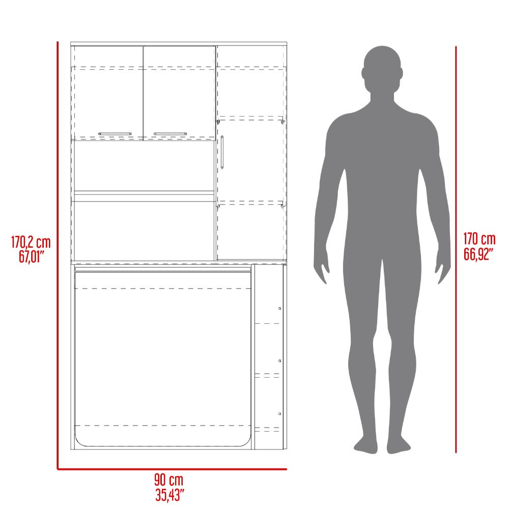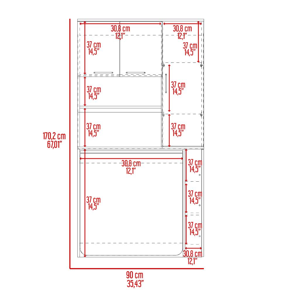 Alacena Multiusos Cosme, Fresno y Blanco, con Tres Puertas Batientes