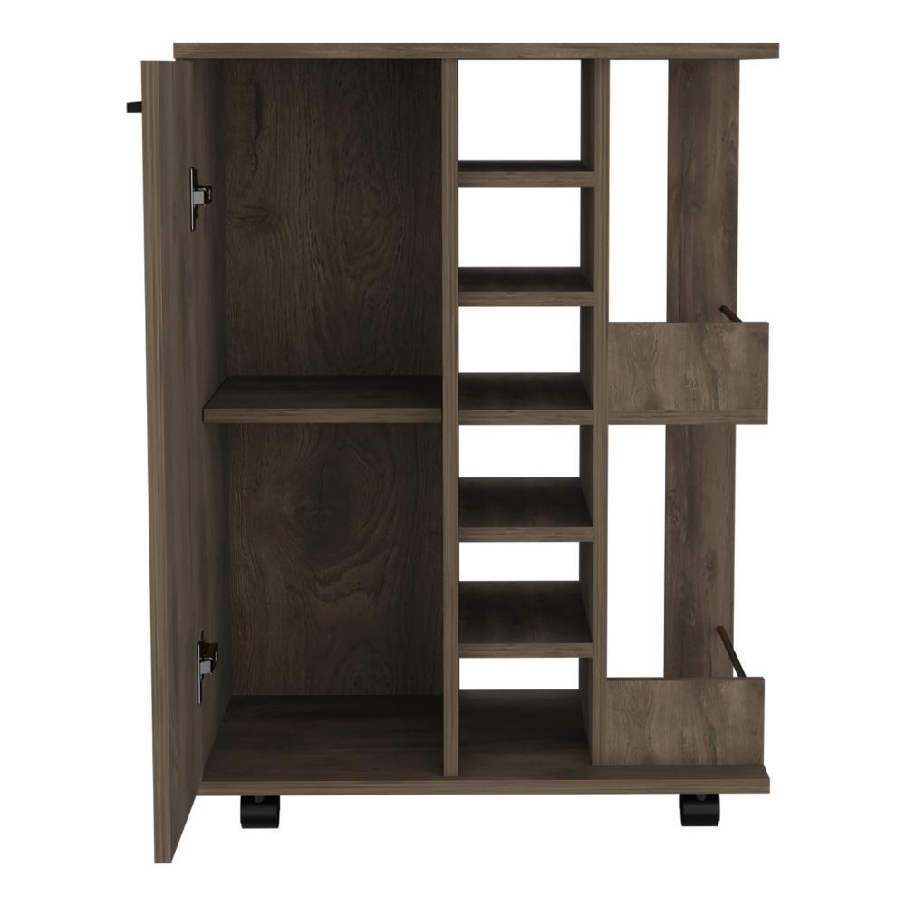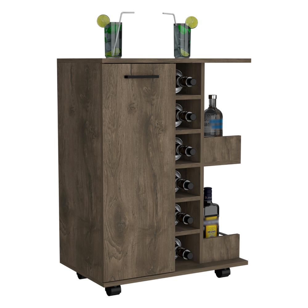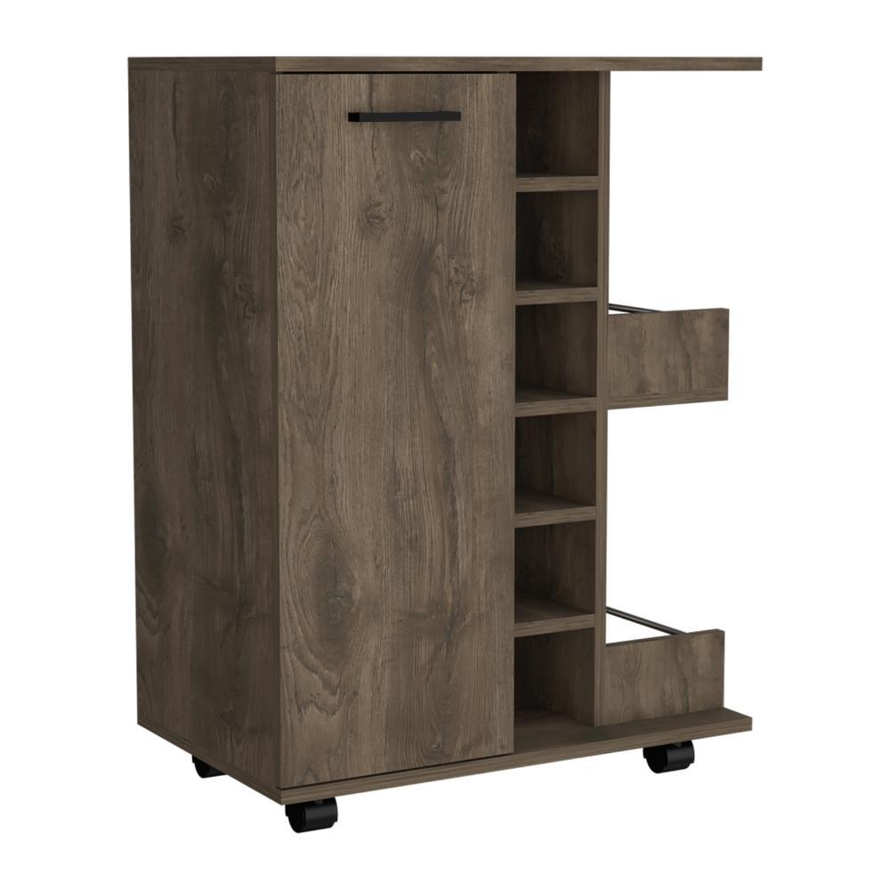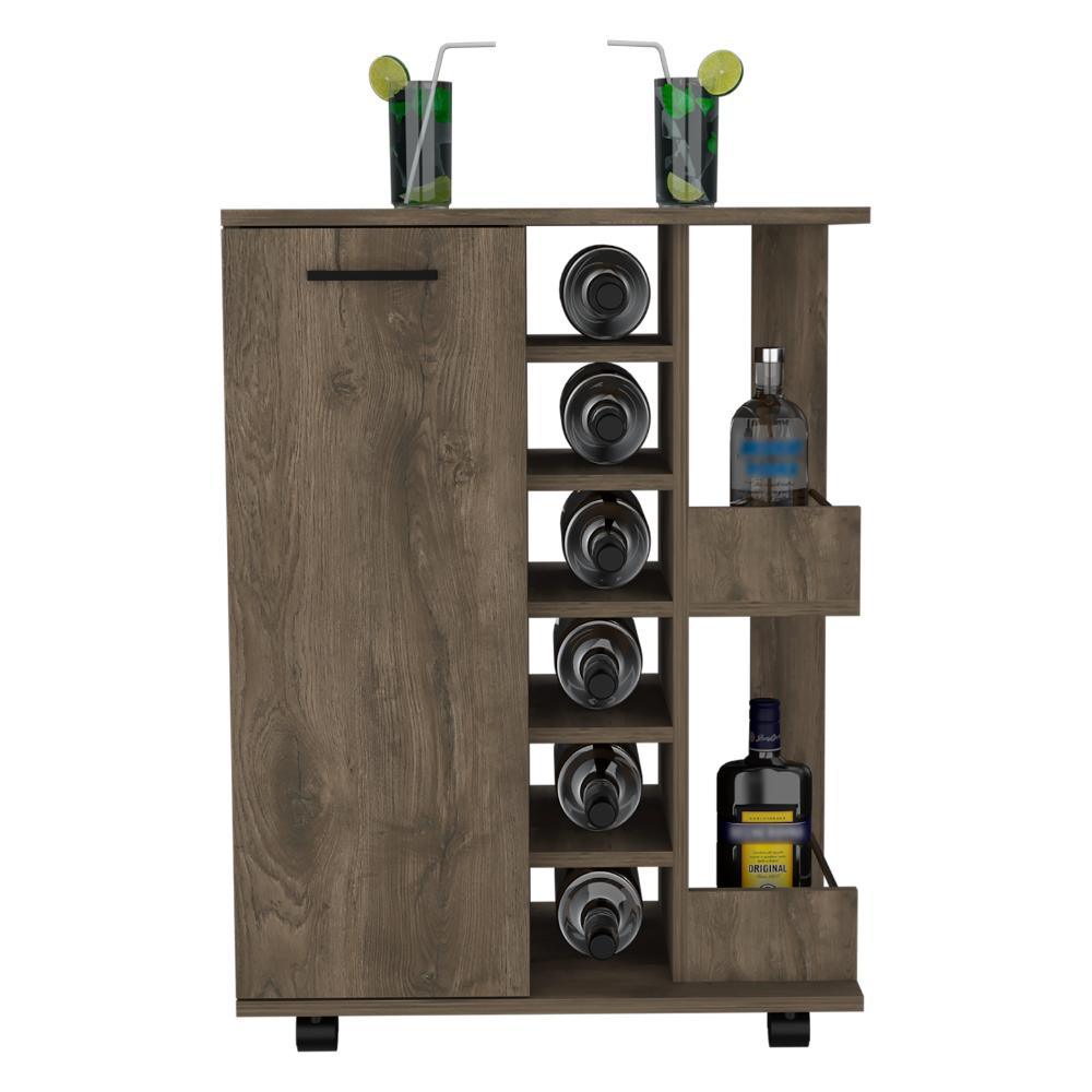 Bar bajo con una puerta abatible, espacio para ubicar licores, rodachinas para su fácil desplazamiento