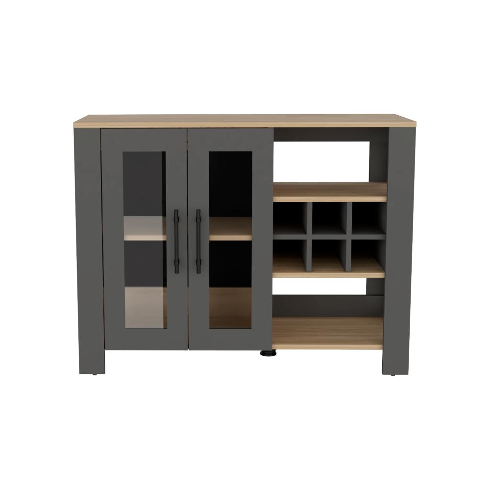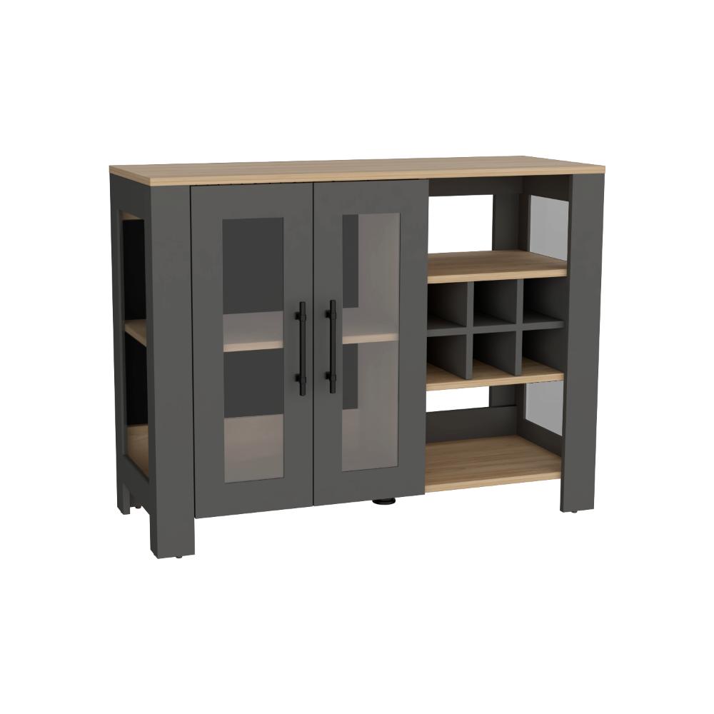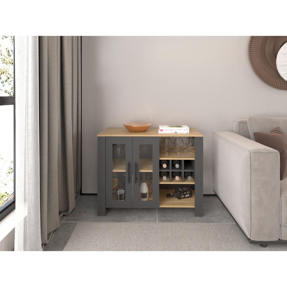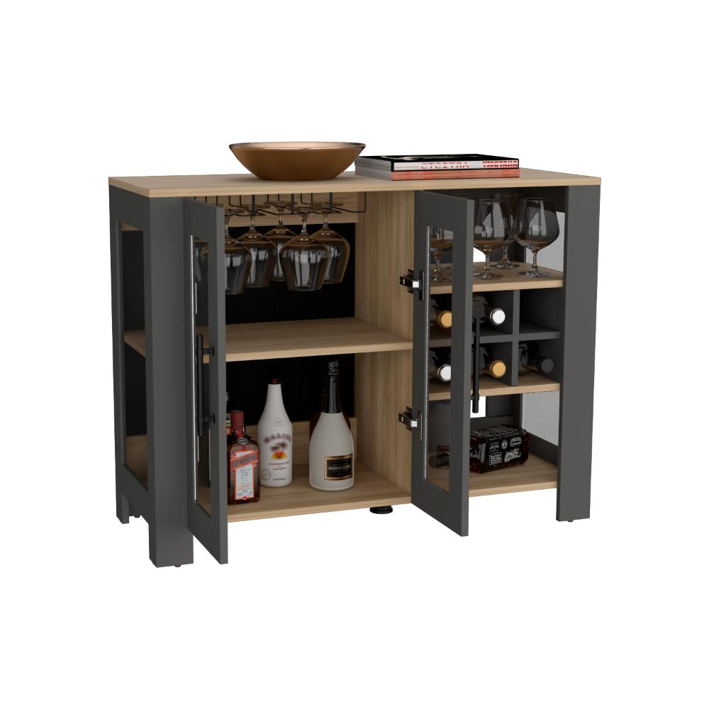 Bar Berky, Plata Oscuro y Fresno Europeo, con puertas de vidrio y manijas metálicas negras
