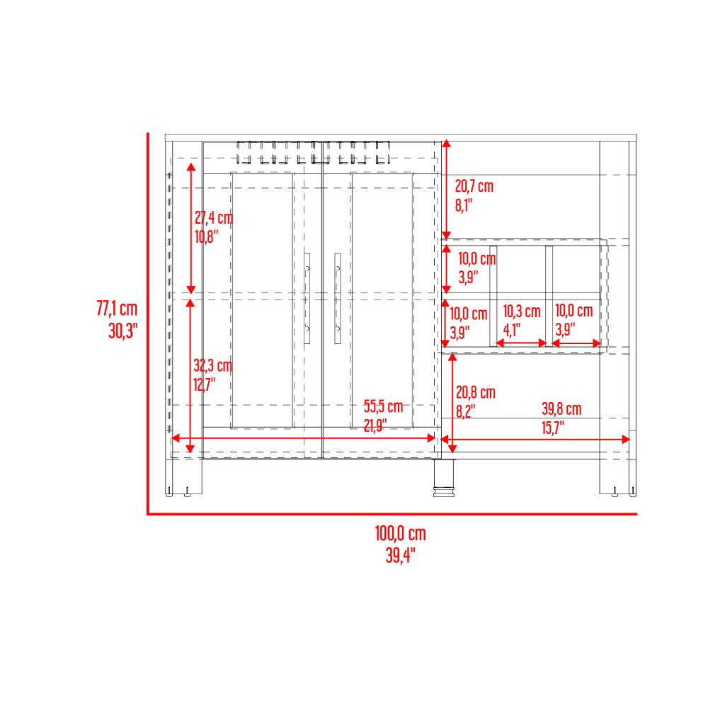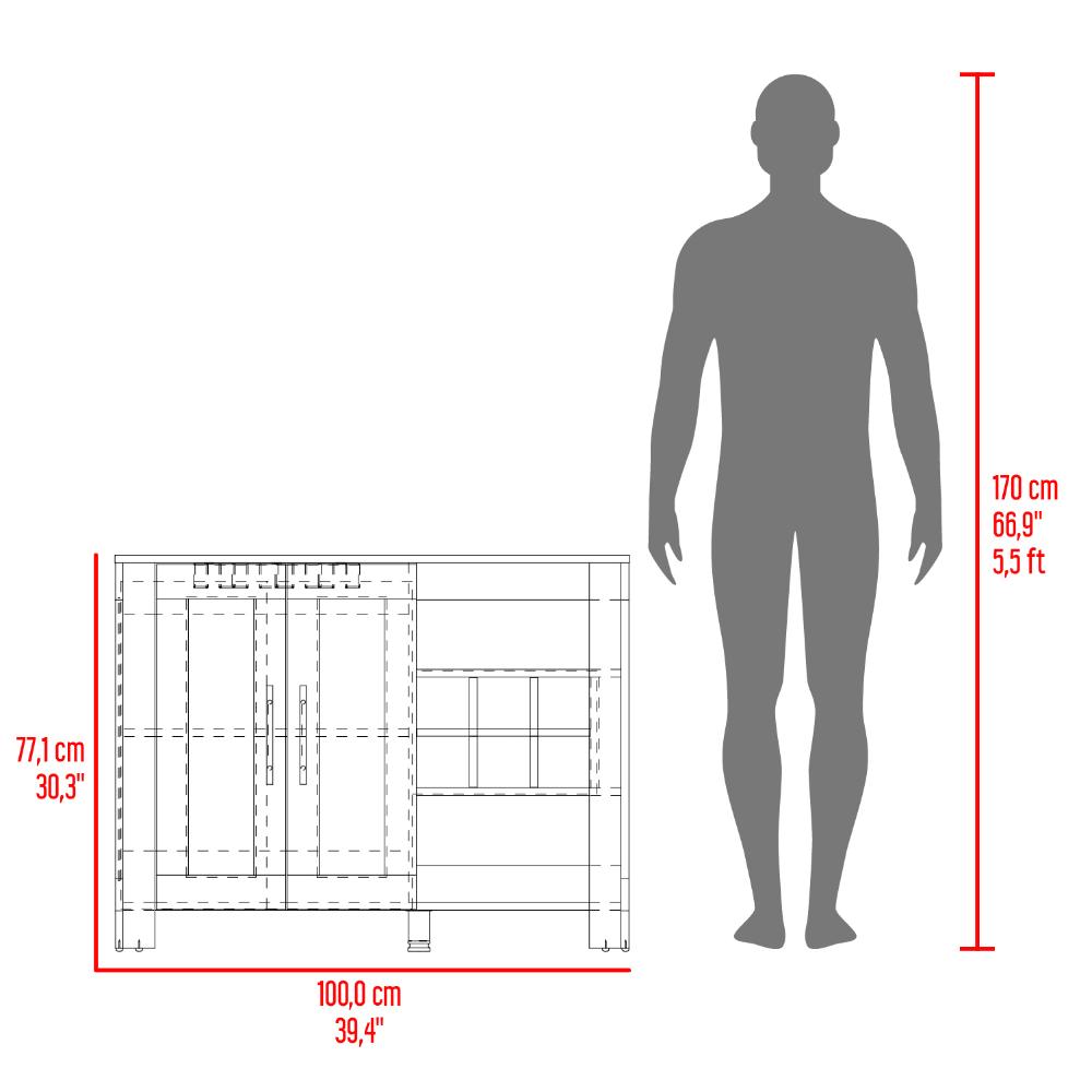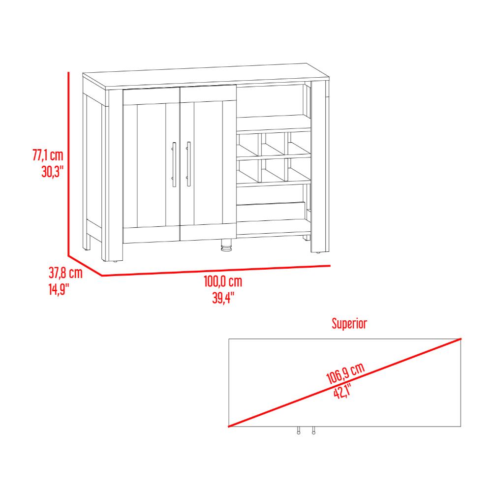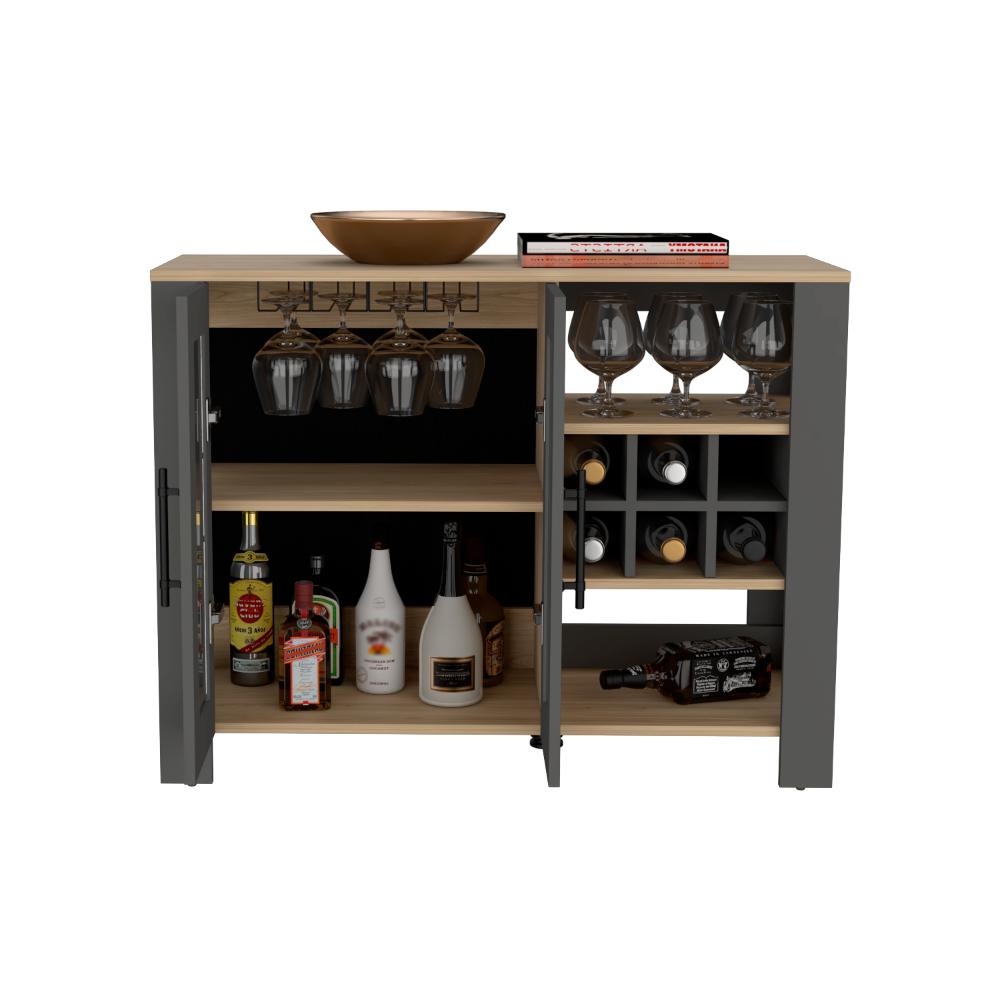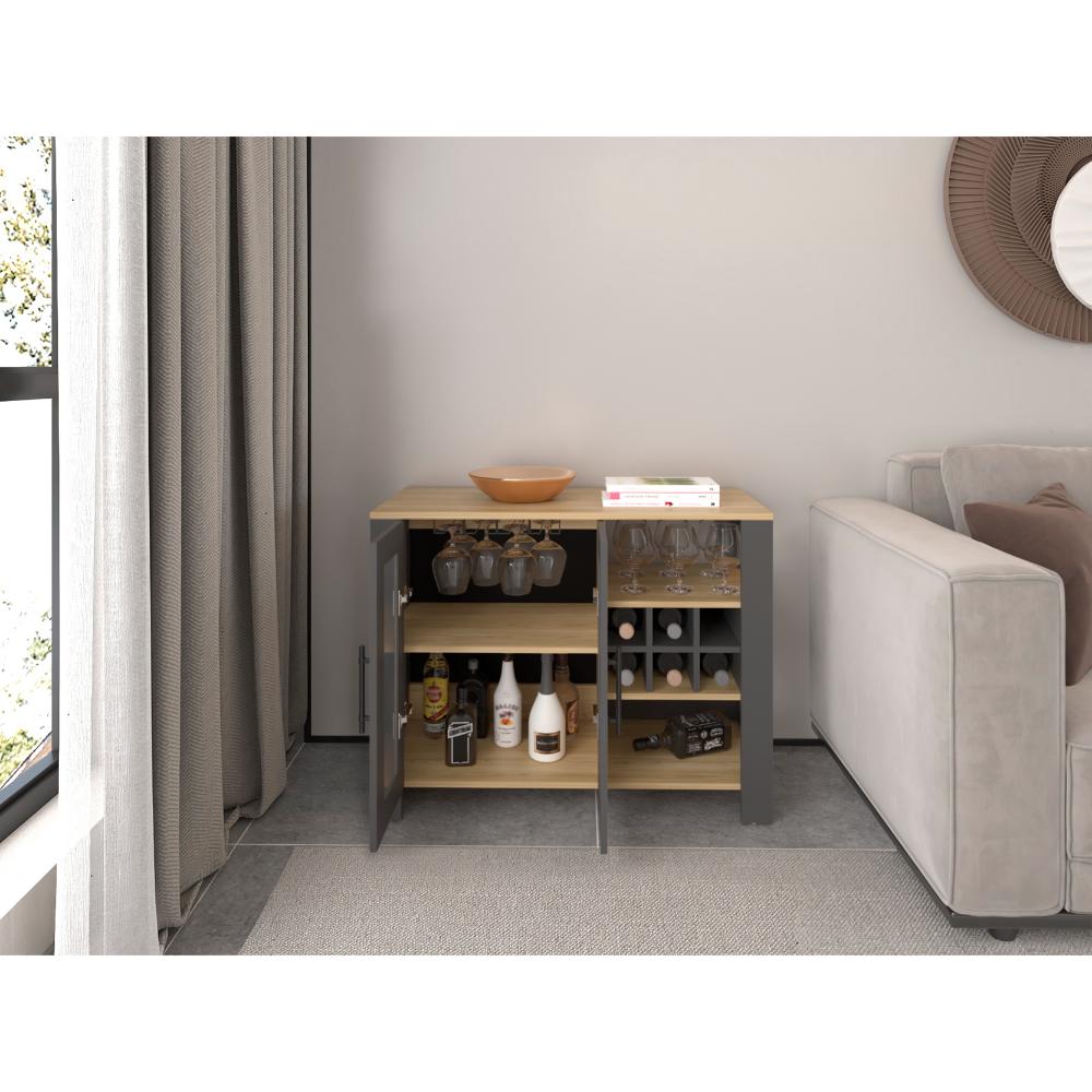 Bar Berky, Plata Oscuro y Fresno Europeo, con puertas de vidrio y manijas metálicas negras