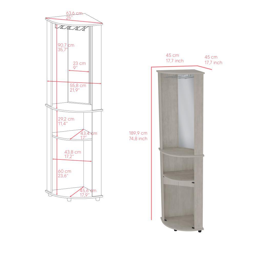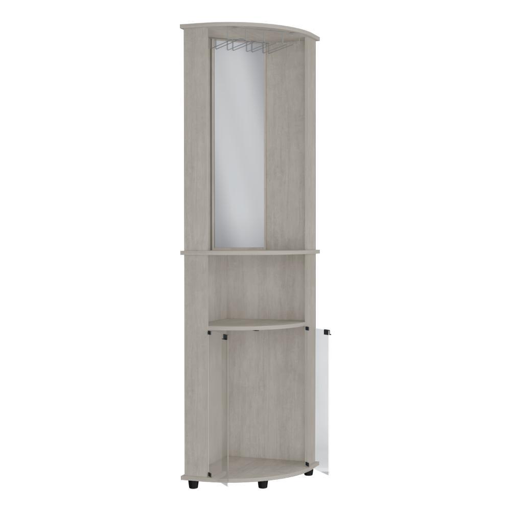 Bar, con colgador de copas, dos puertas de vidrio, espejo, espacio para almacenar botellas y objetos del bar.