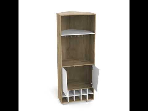 Bar Esquinero Orus, Macadamia y Blanco, con Espacio Para Botellas y Porta Copas Hc