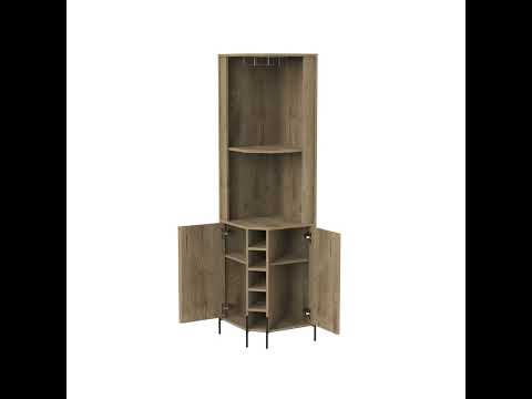 Bar Esquinero Sharon, Macadamia, con Espacio Superior Para Almacenar Copas de Vino