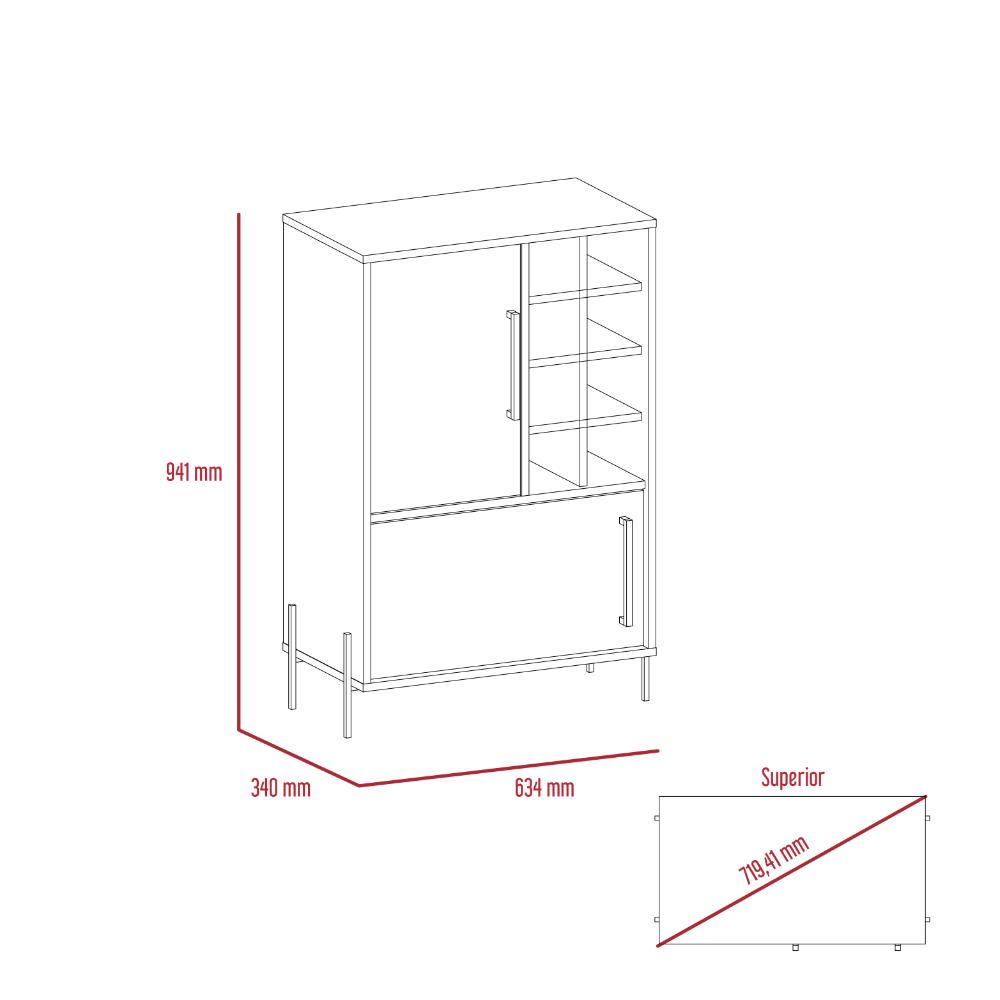 Bar Harvard, Beige y Gris, Amplio Espacio Para Botellas y Porta Copas