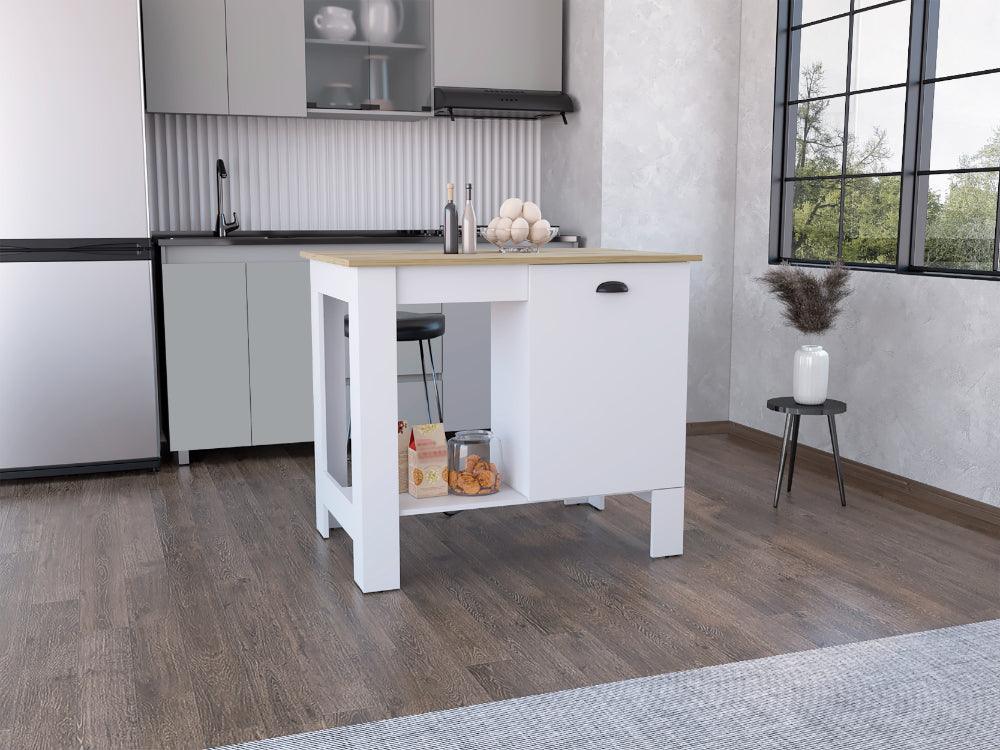 Barra de Cocina Atenat, Blanco y Macadamia, con amplia superficie en la mesa