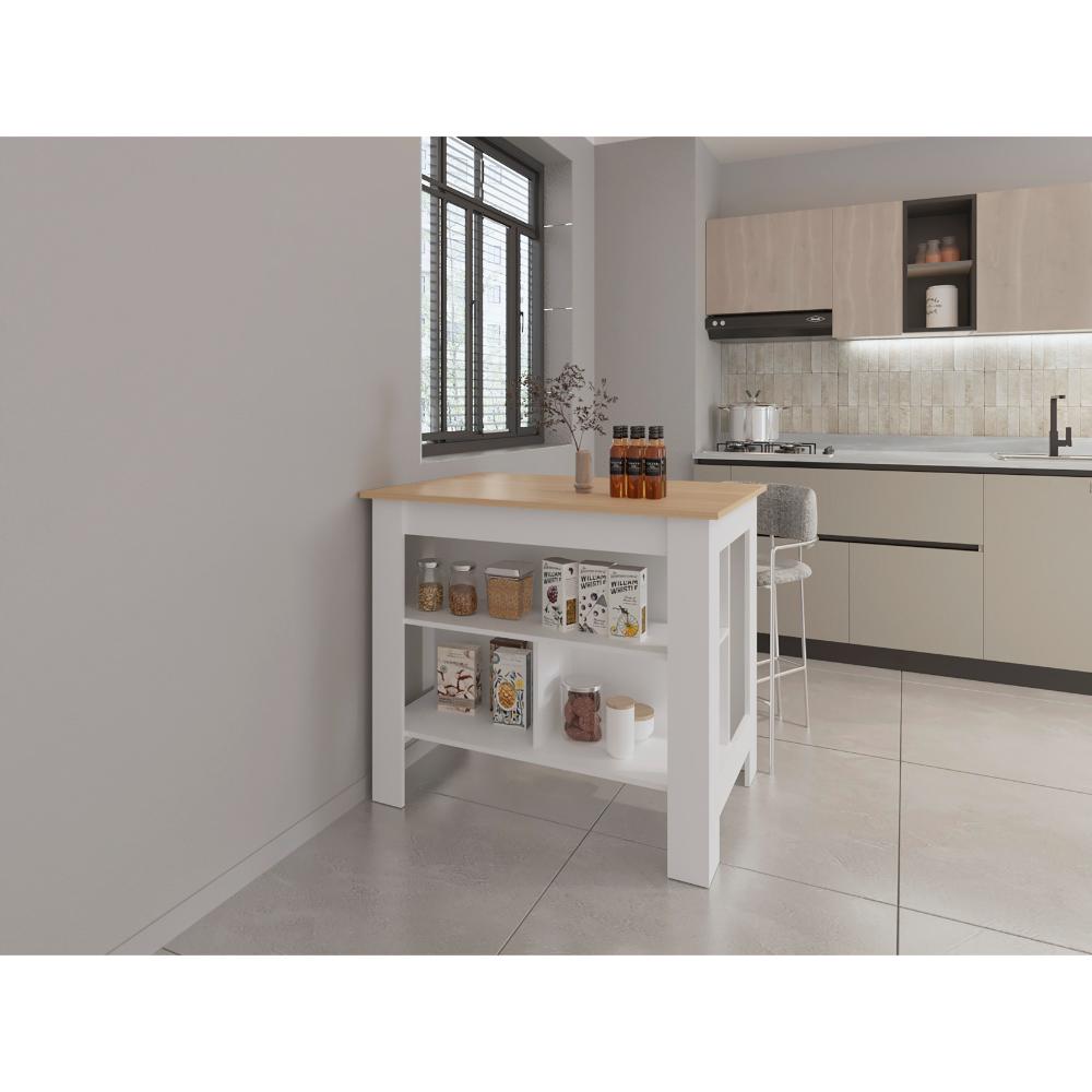 Barra de Cocina Cala, Beige y Blanco, con amplia superficie en la mesa ZF
