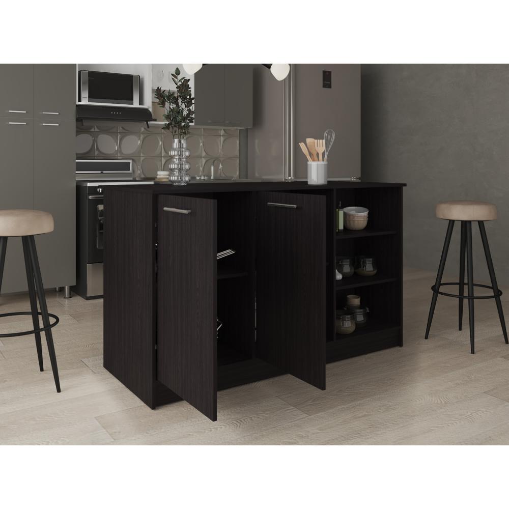 Barra de Cocina, con tres entrepaños para guardar objetos de cocina, diseño limpio y moderno, amplia superficie superior.