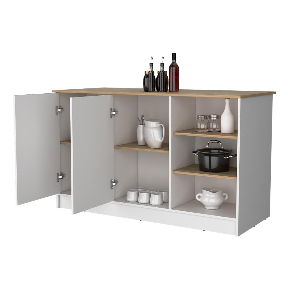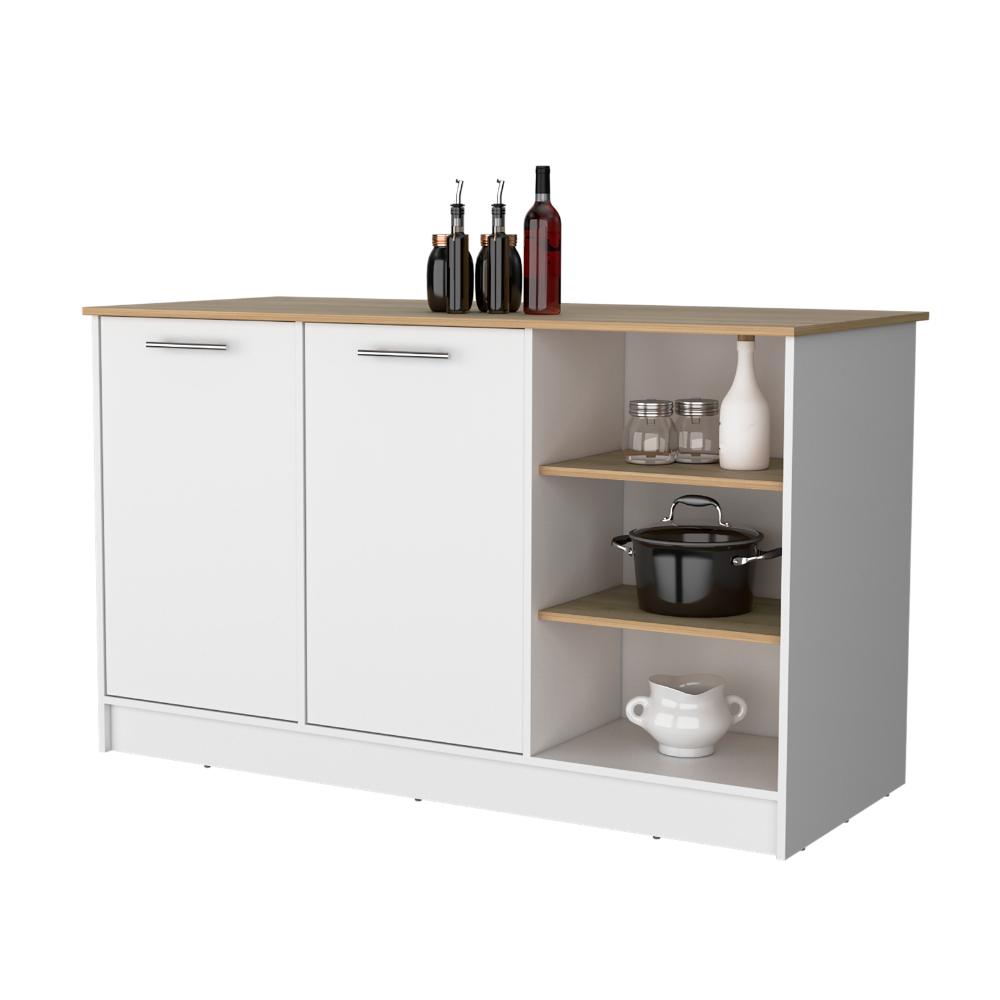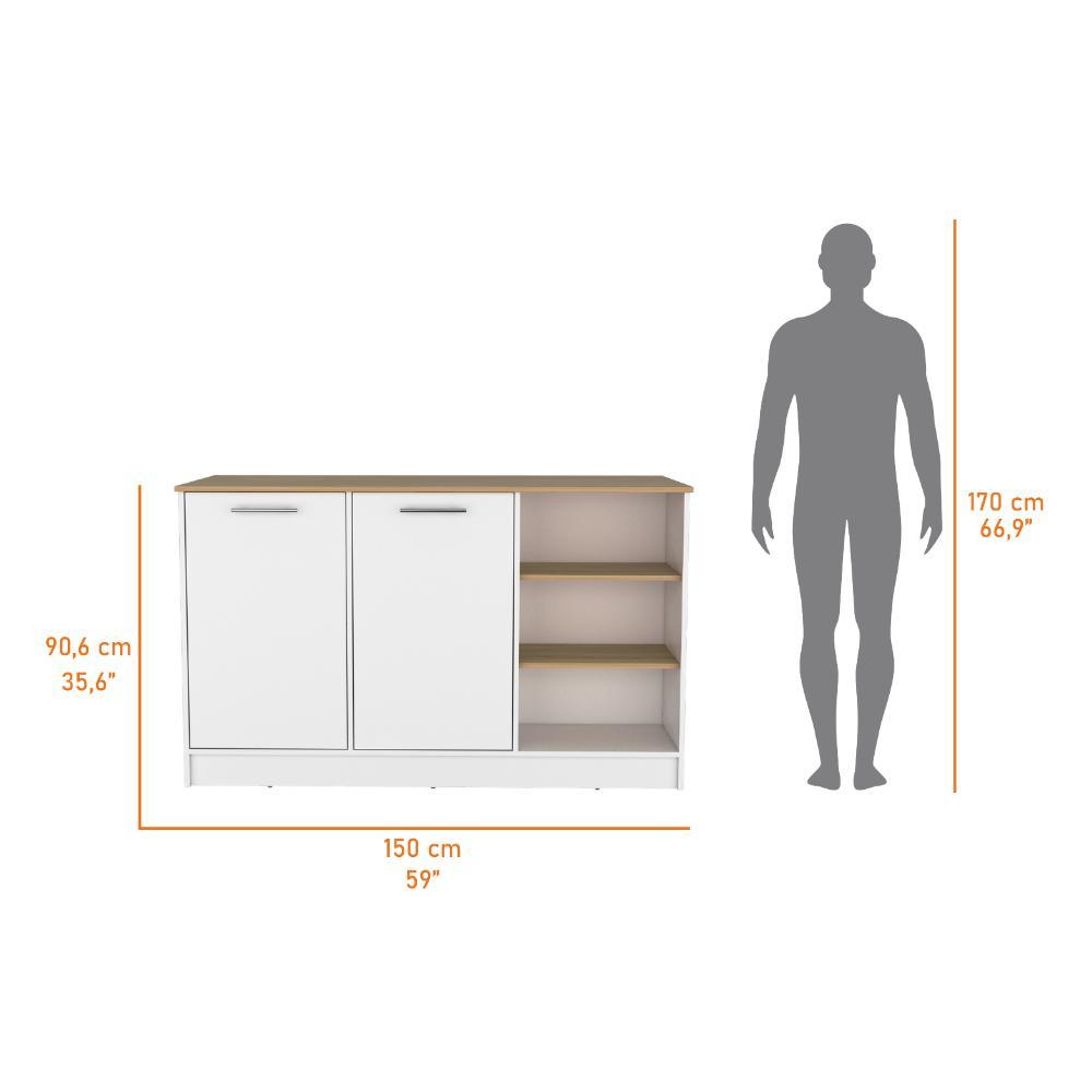 Barra de Cocina Lugano, Blanco Duqueza y Fresno Europeo, con Dos Puertas Abatibles ZF