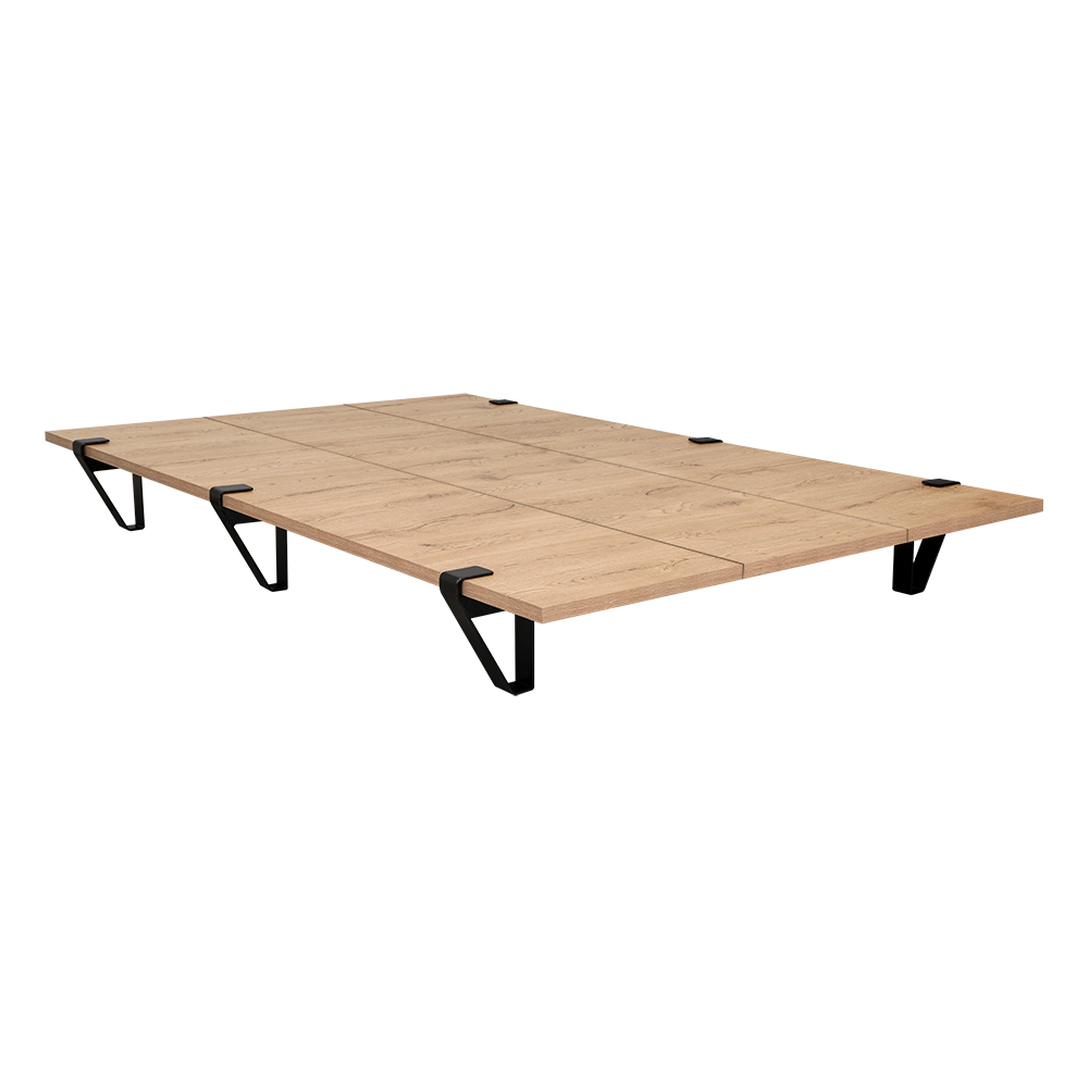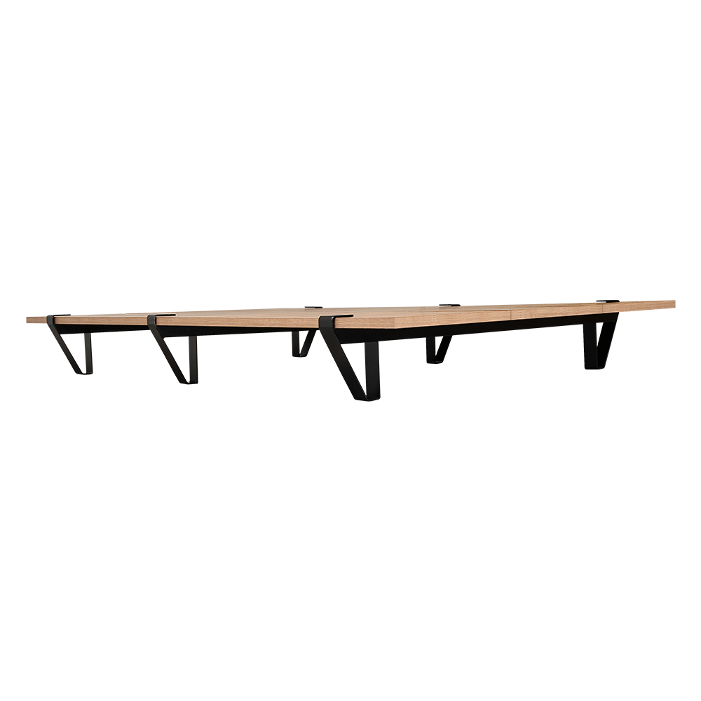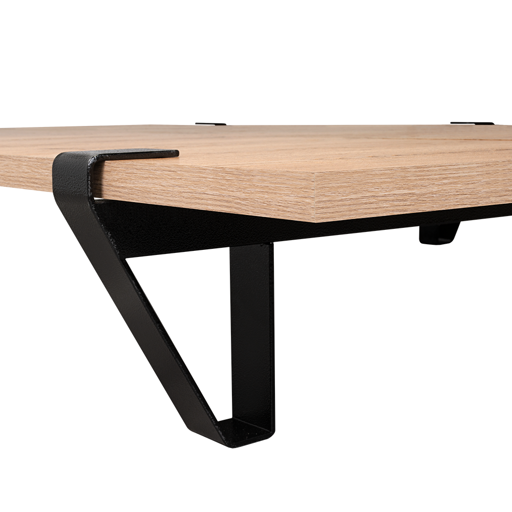 Elaborada en 3 listones de 43,3 x 197 en Madera MDP cal 25mm y 3 soportes en platina color negro