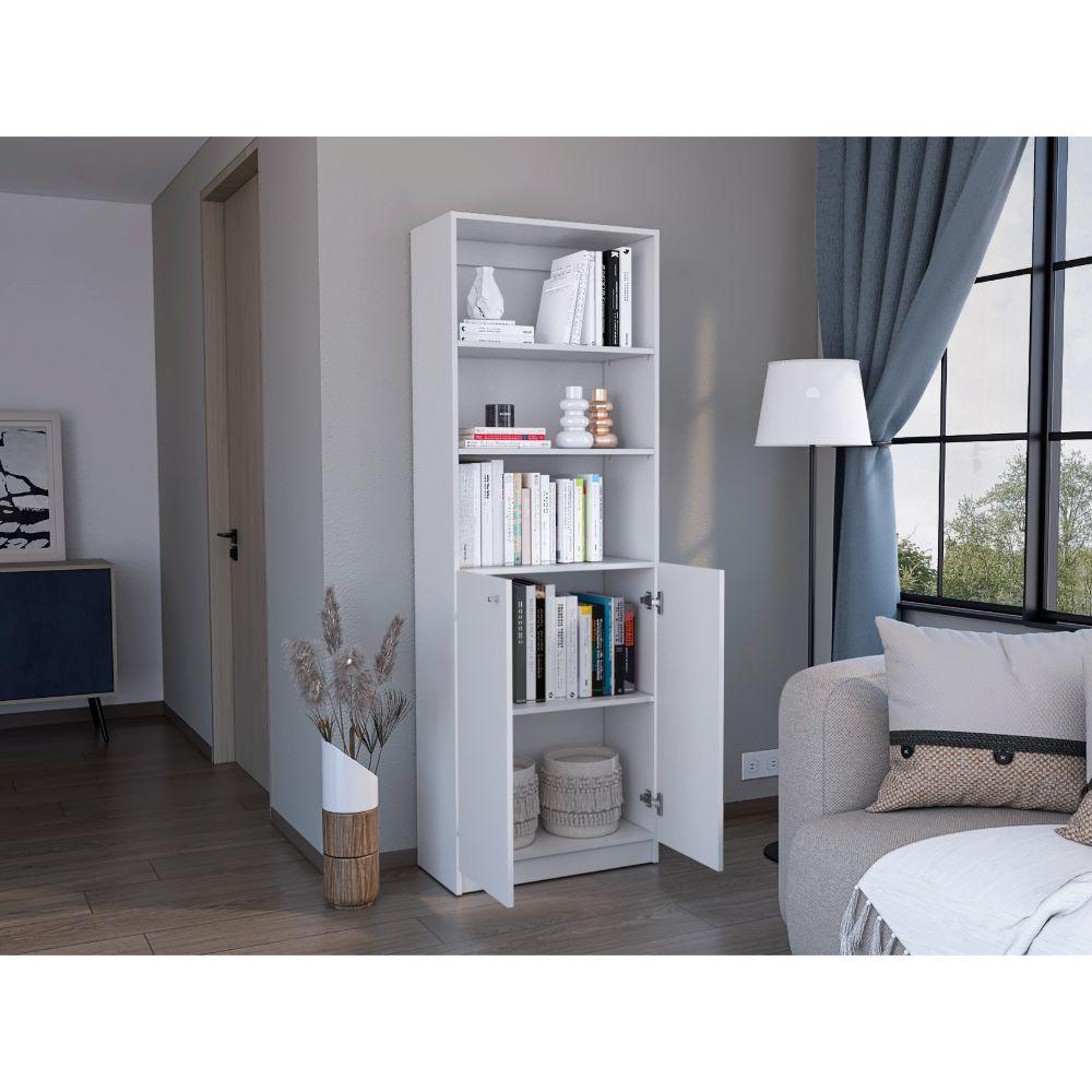 Biblioteca Home, Blanco, con Cinco Entrepaños y Dos Puertas Abatibles ZF