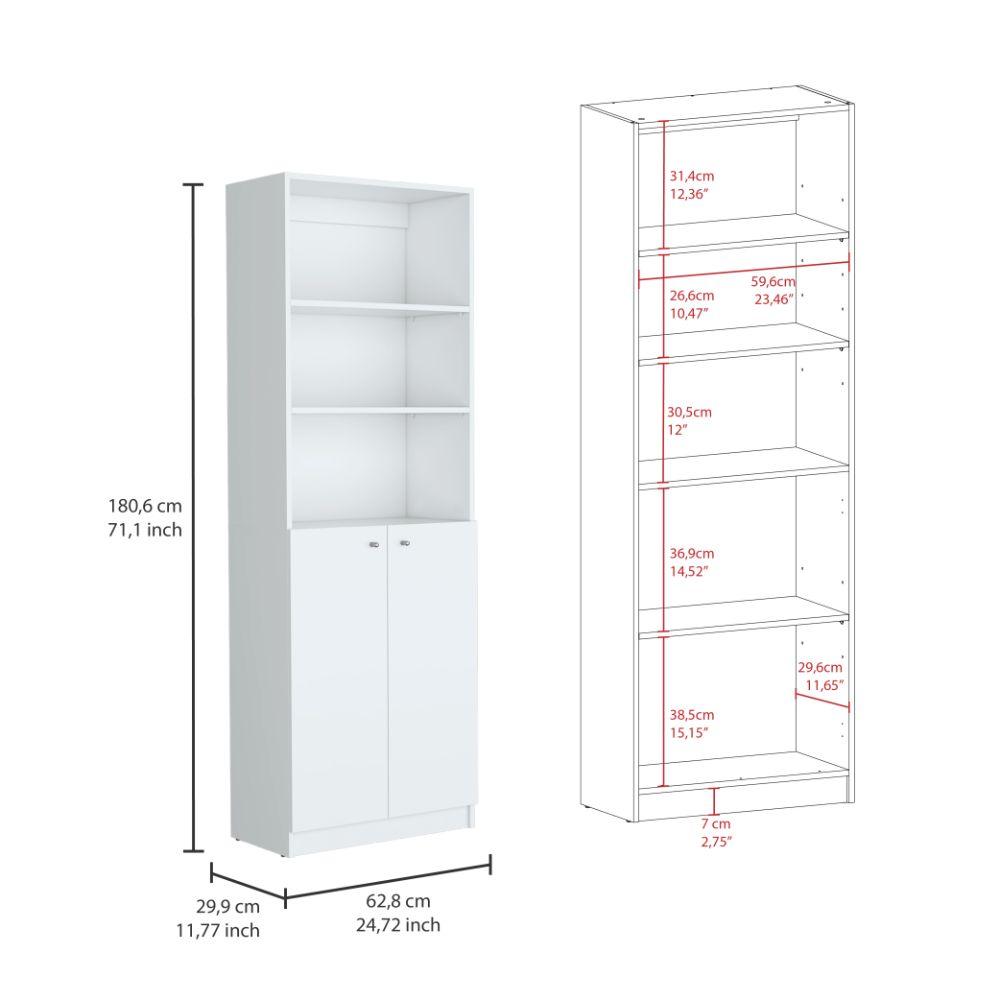 Biblioteca Home, Blanco, con Cinco Entrepaños y Dos puertas ZF