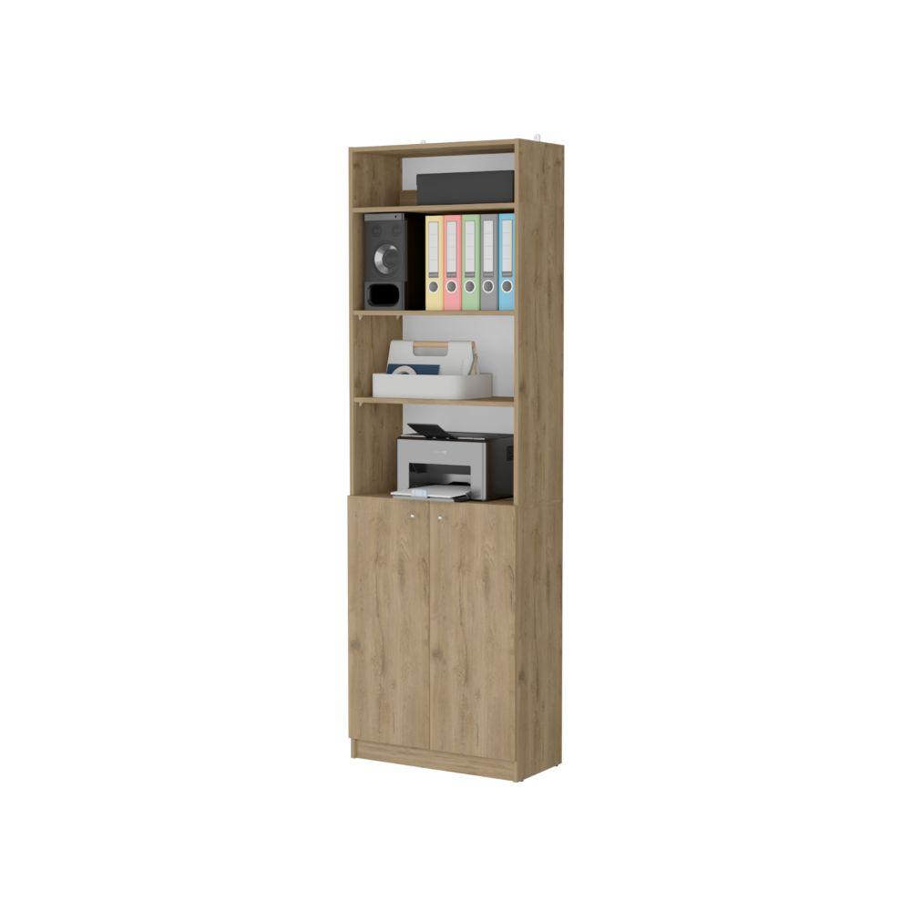 Biblioteca Home, Macadamia y Blanco Cartón, con Cinco Entrepaños y Dos Puertas Abatibles Incluye complemento