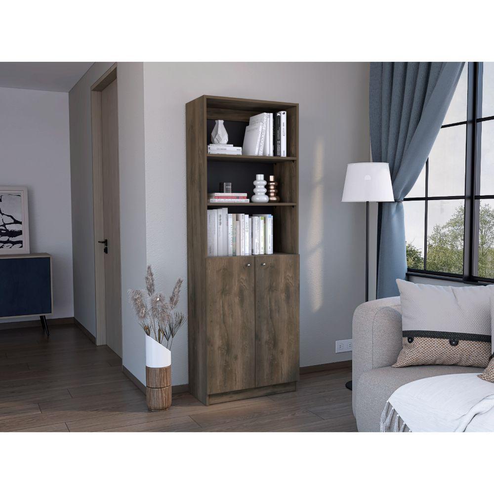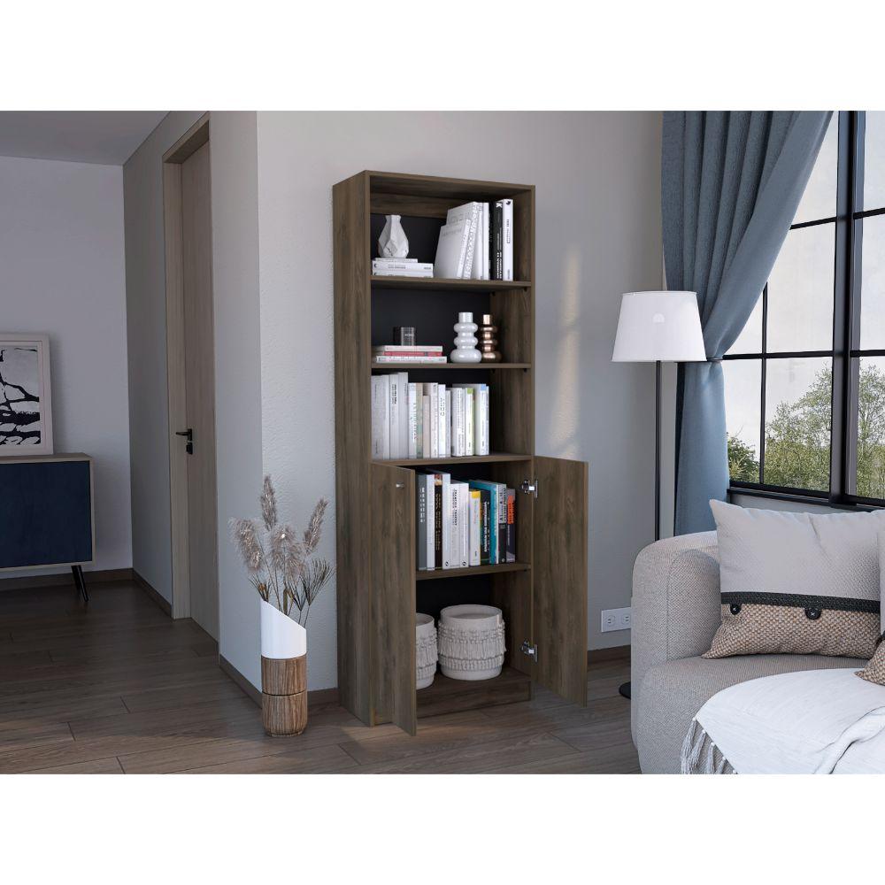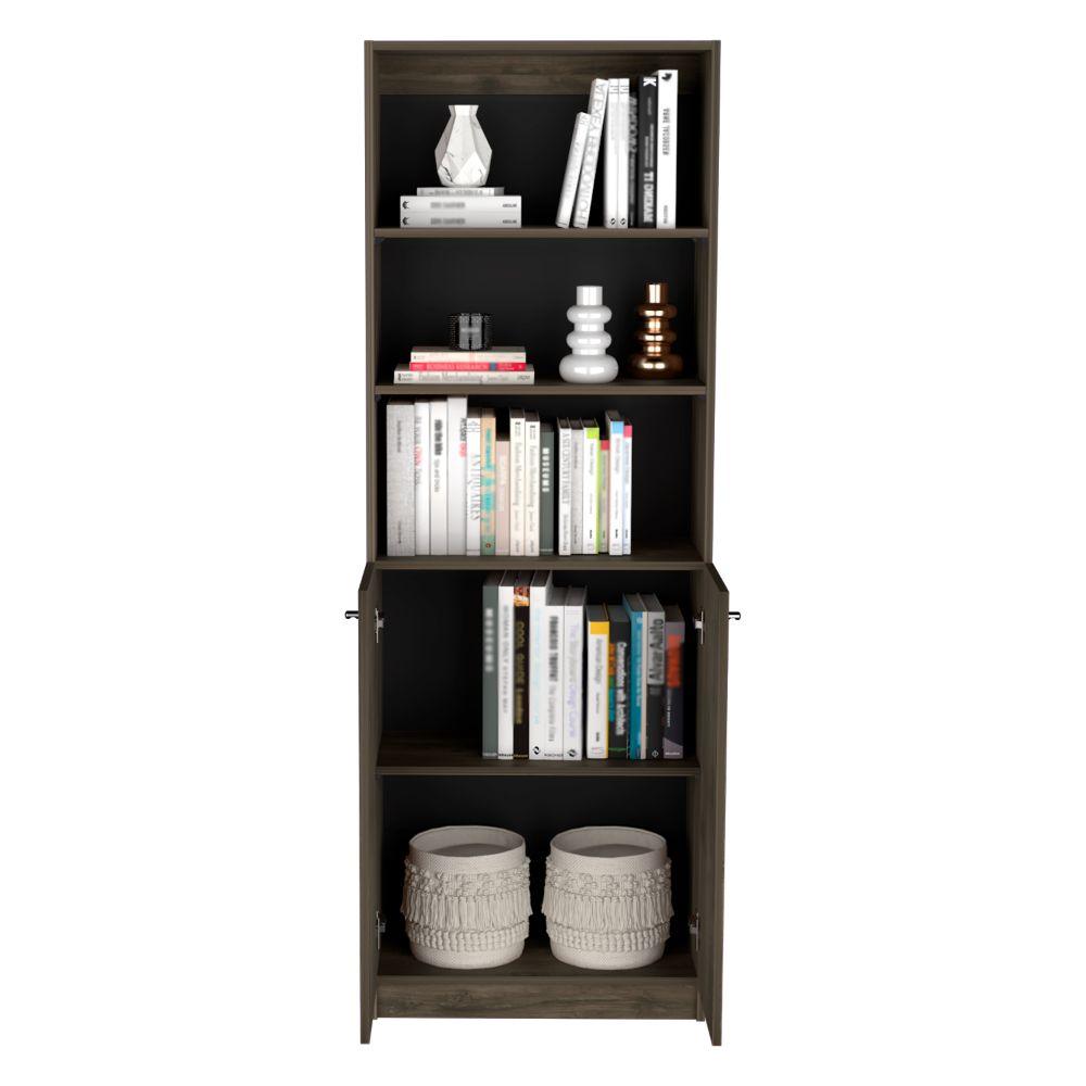 Biblioteca Home, Nogal y Wengue, con Cinco Entrepaños y Dos Puertas Abatibles ZF