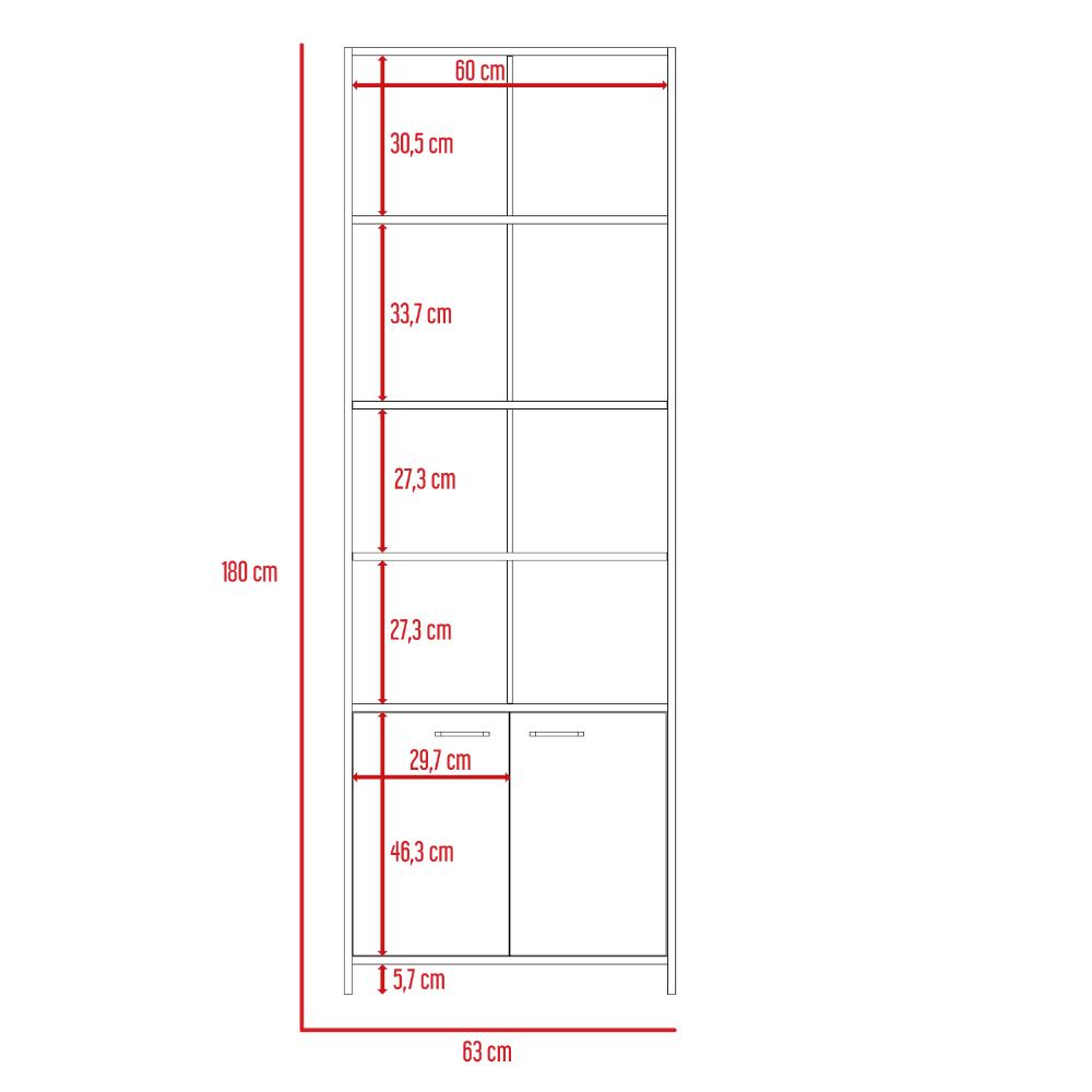Biblioteca Milán, Cobre, con Dos Puertas Abatibles y Tres Entrepaños