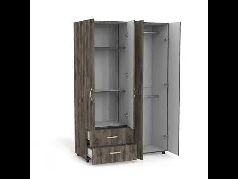 Closet Arkola, Nogal y Blanco, con Dos Cajones Organizadores y Cuatro Puertas Abatibles