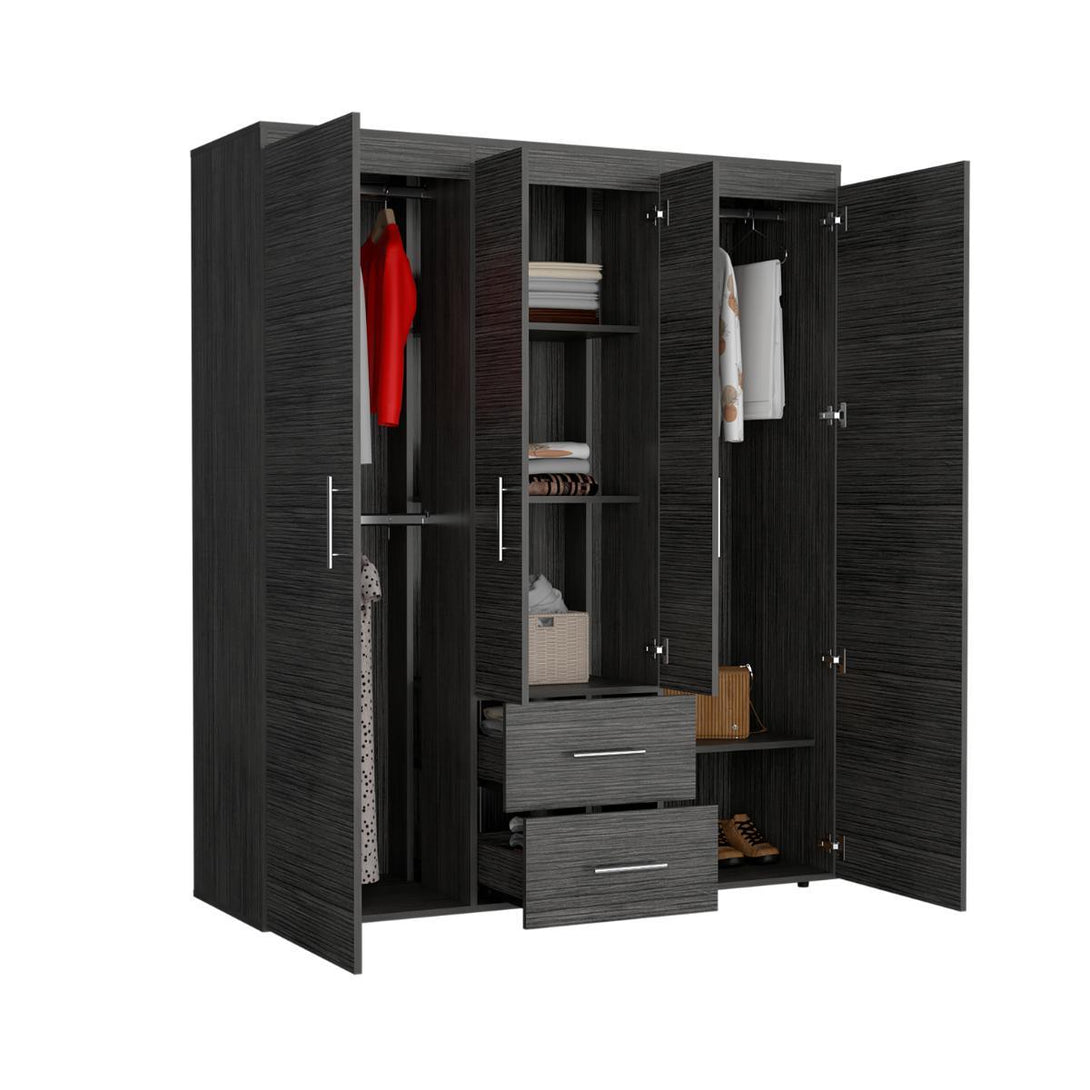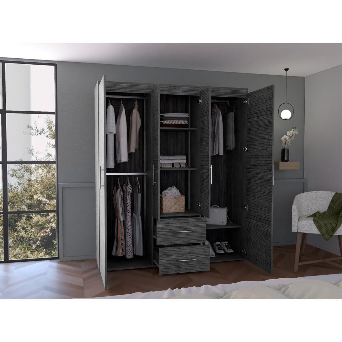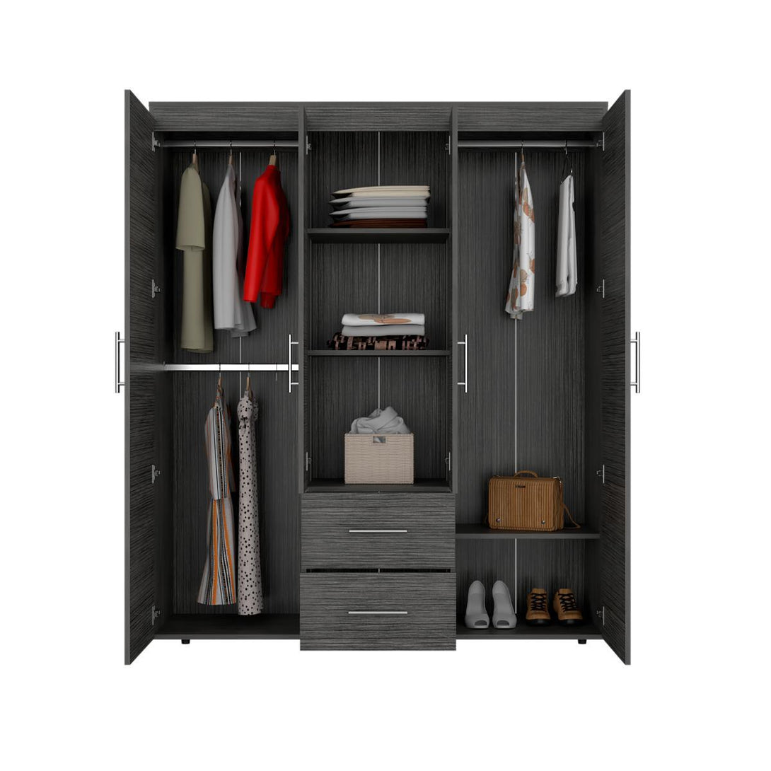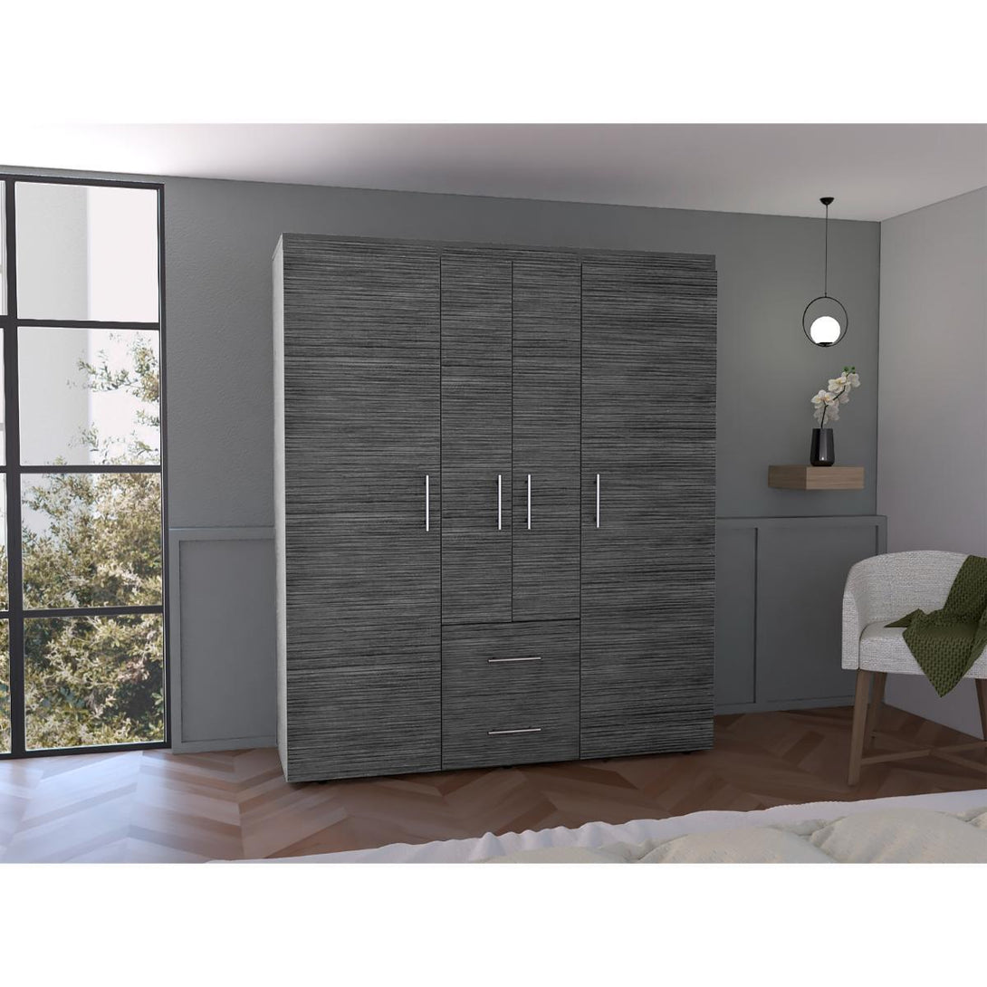 Closet Bariloche Bombay Eco, Gris, con Variedad de Entrepaños y Cuatro Puertas Abatibles