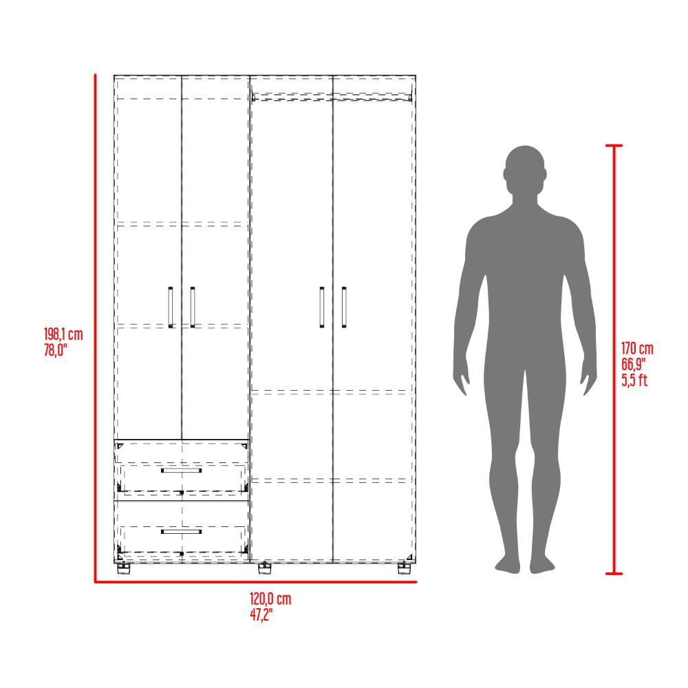 Closet Barin 120, Fresno Europeo y Wengue, con cajones de gran capacidad para su almacenamiento