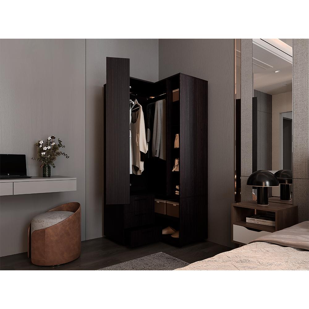 Closet Esquinero Tolu, Wengue, con tres cajones y múltiples espacios ZF