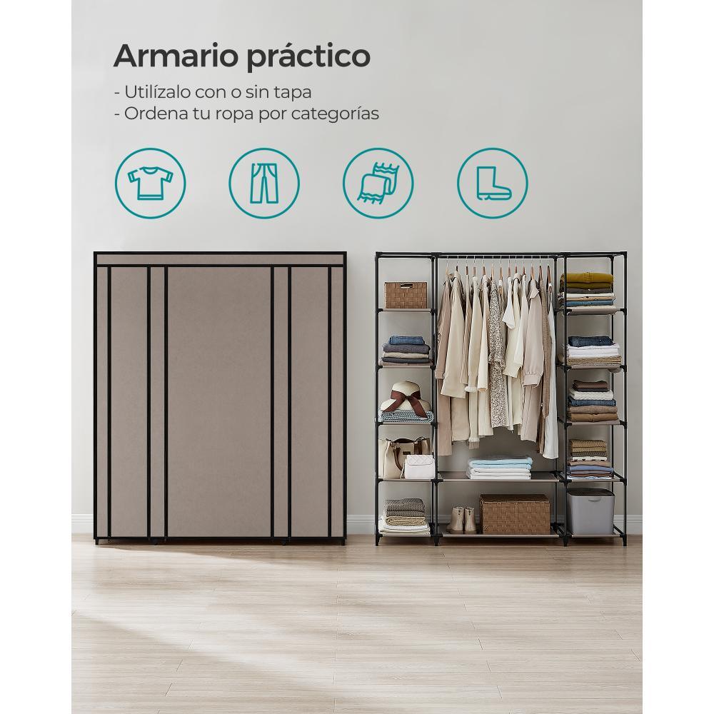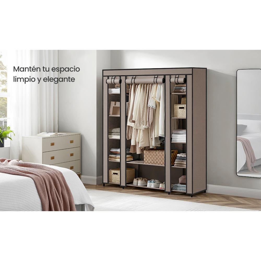 Closet Portátil, con amplios espacios y entrepaños para organizar, elaborado en tela y plástico.