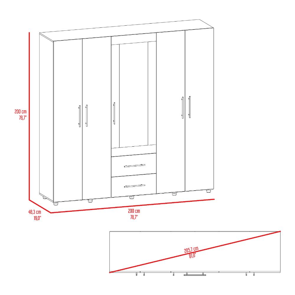 Closet Montano, Fresno Europeo y Blanco, con Espejo
