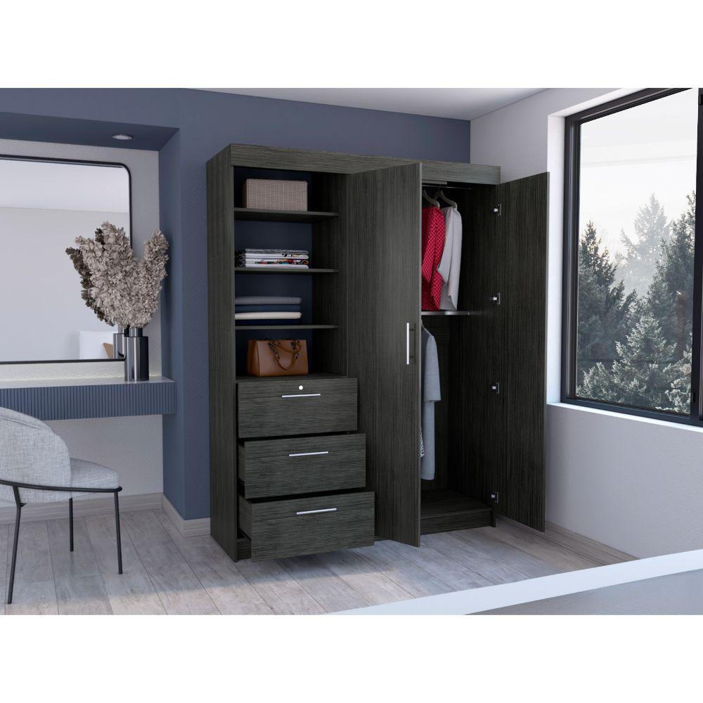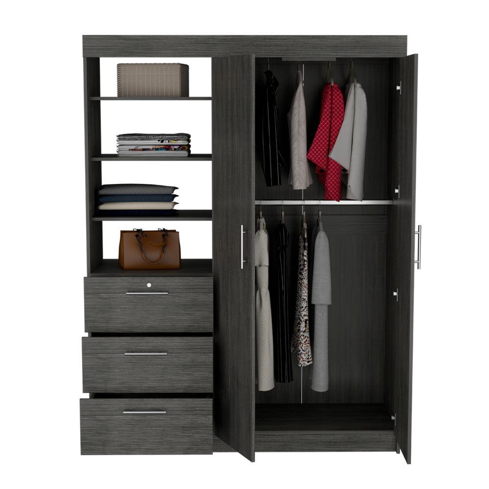 Closet, con amplios espacios para guardar ropa, 2 tubos, 2 puertas abatibles y 3 cajones, ideal para darle un toque moderno a tus espacios.