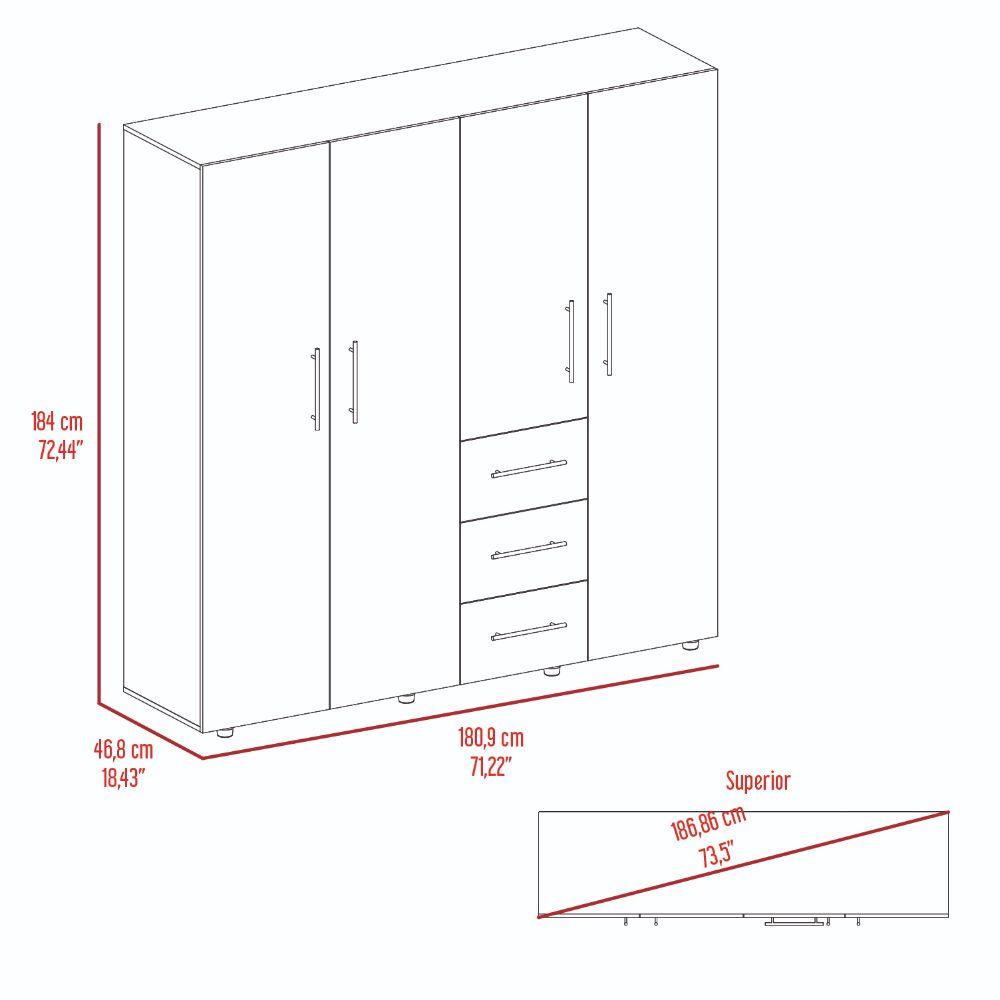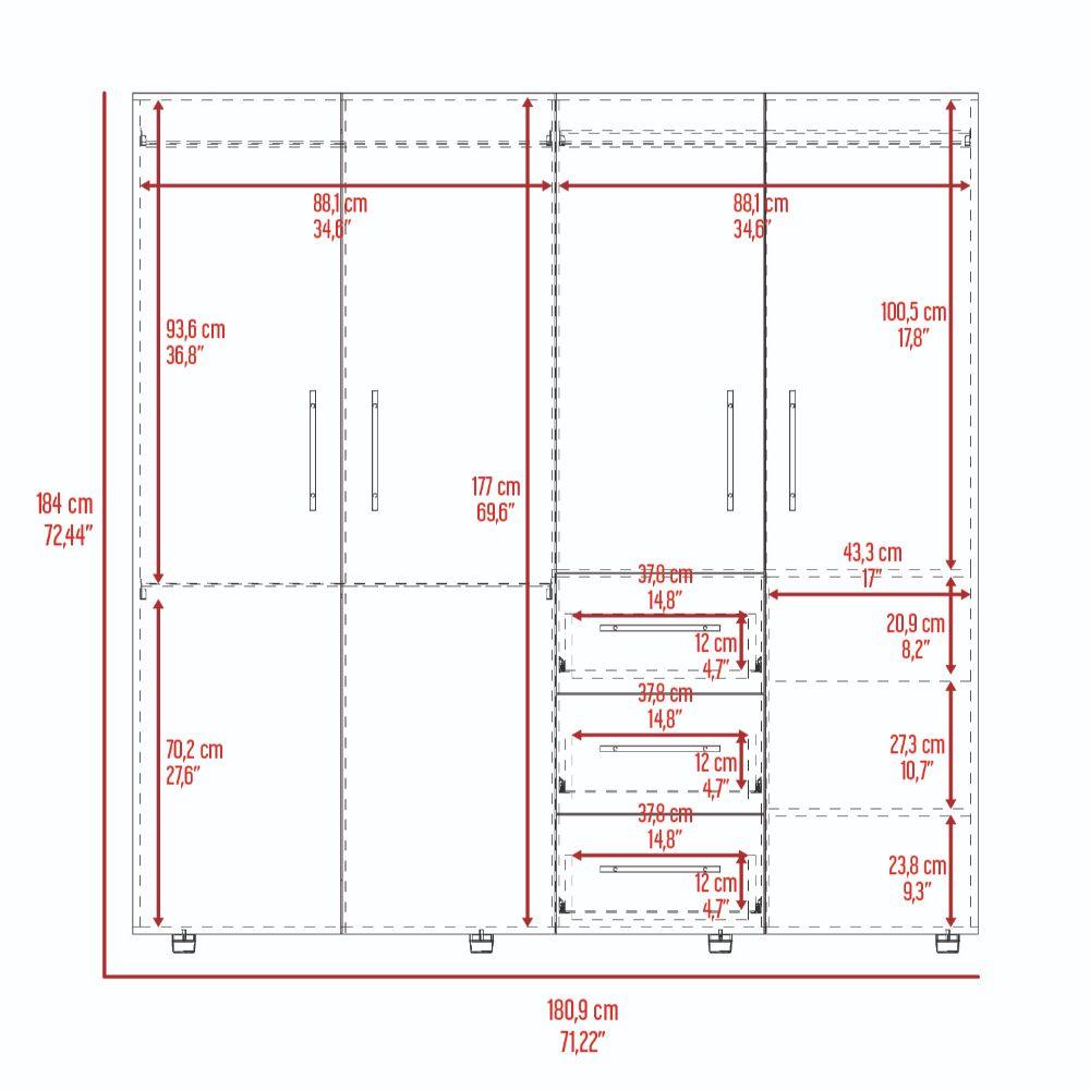 Closet Poche, Café y Blanco, con Tres Cajones Organizadores y Tres Tubos Cromados