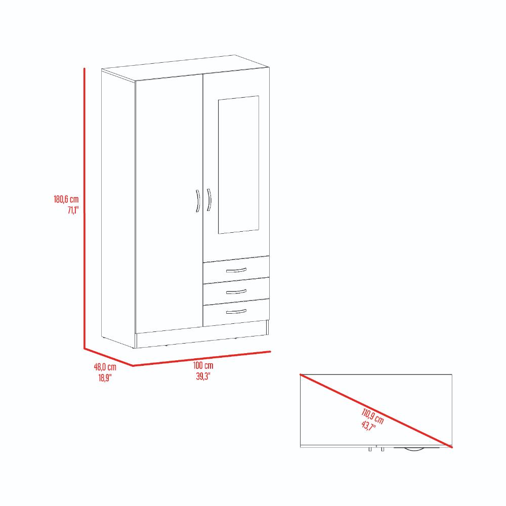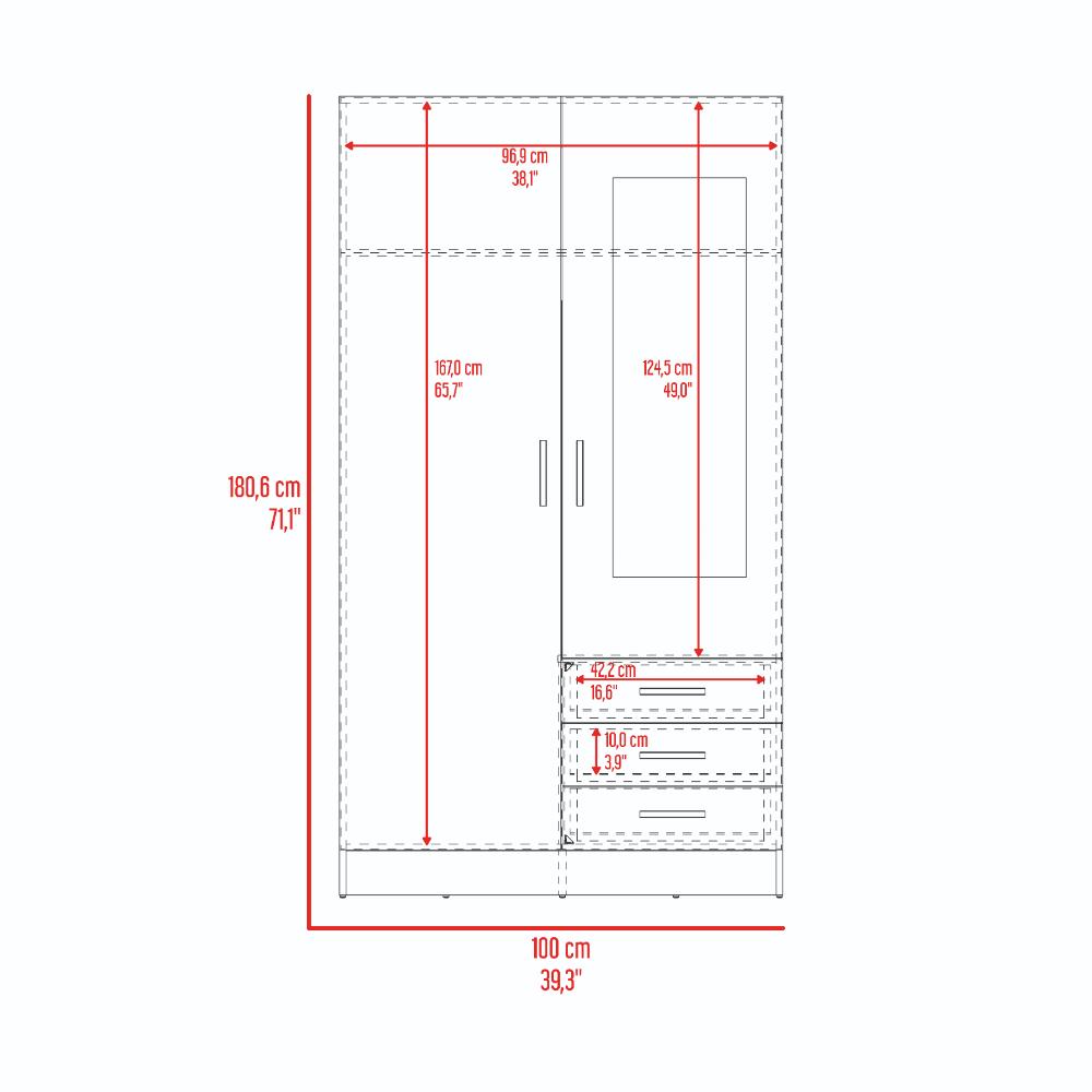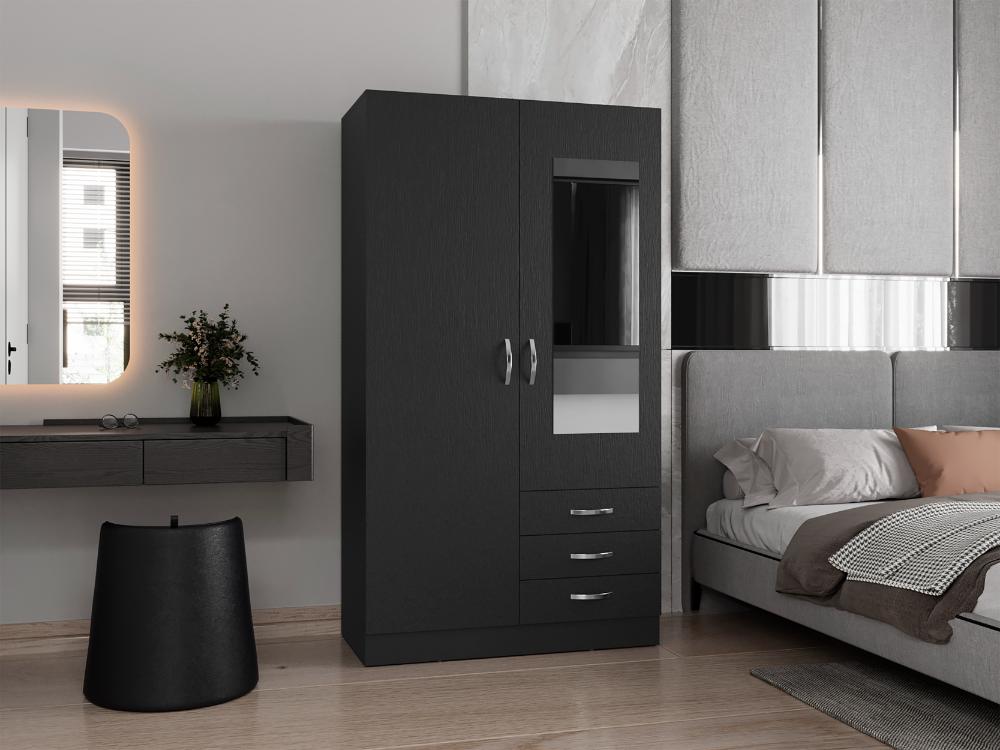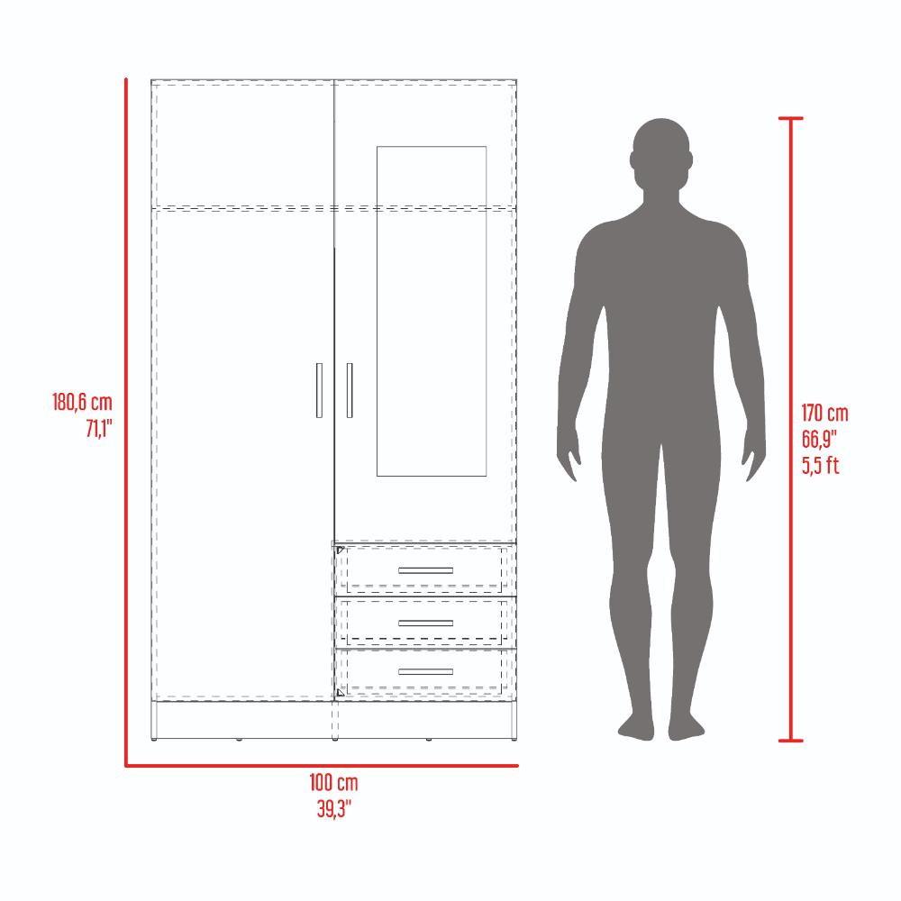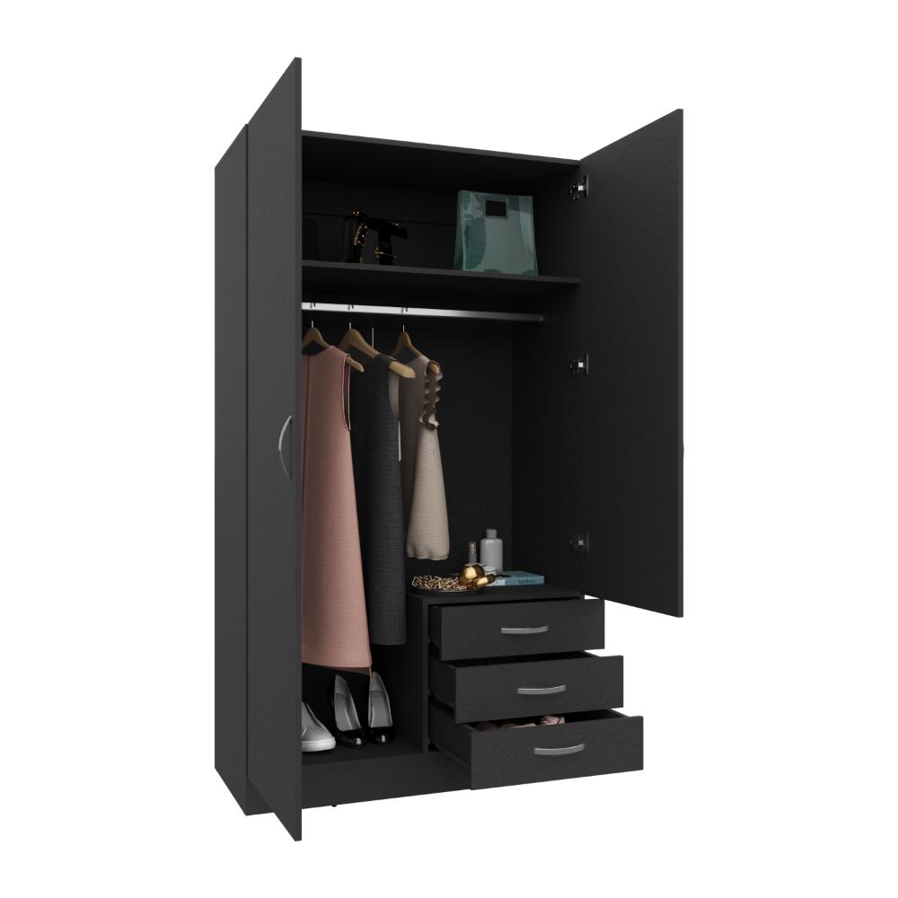 Closet Samka, Wengue, con dos puertas abatibles y tres cajones