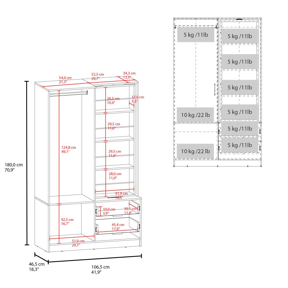 Closet Sevil, Blanco, con espejo y zapatero incluido ZF
