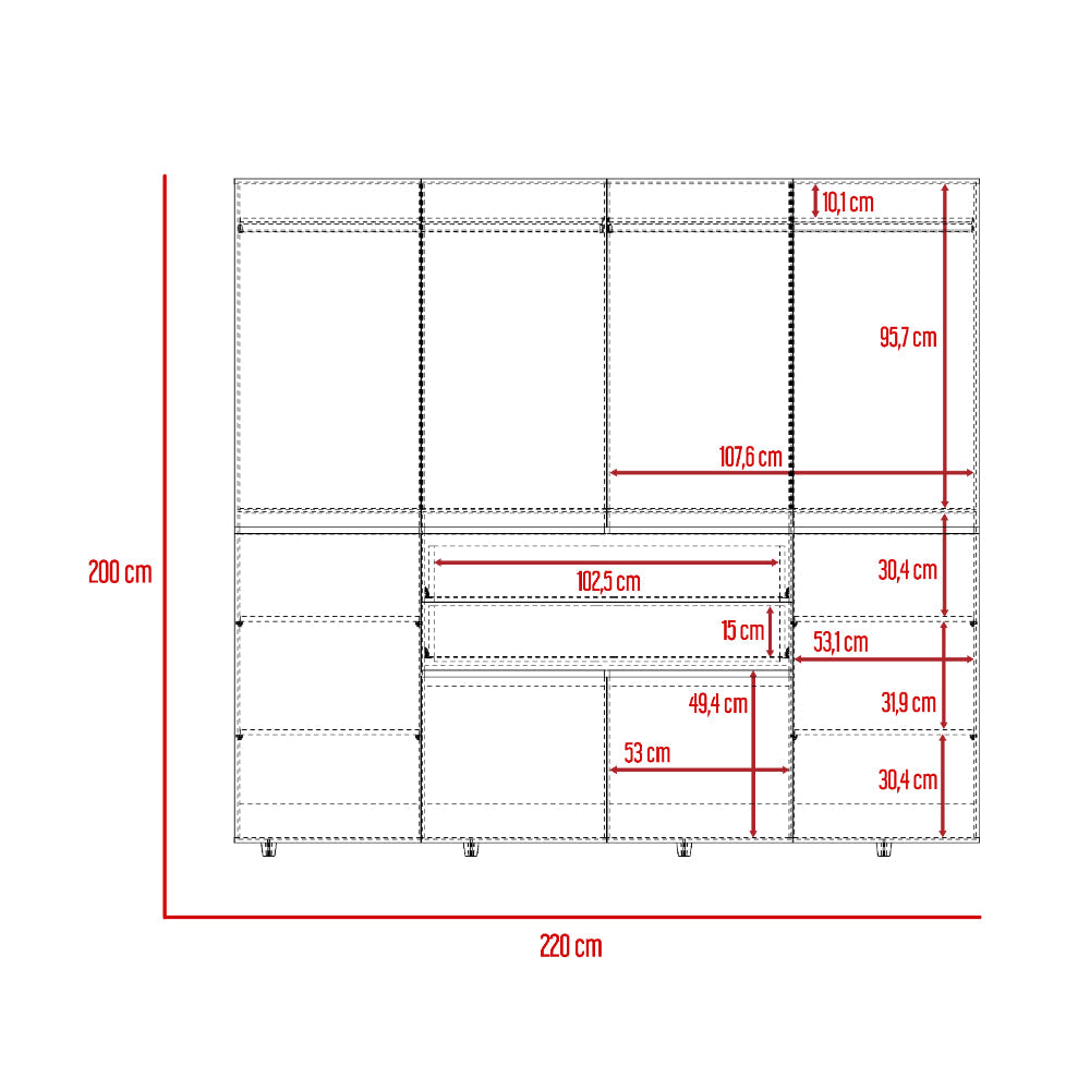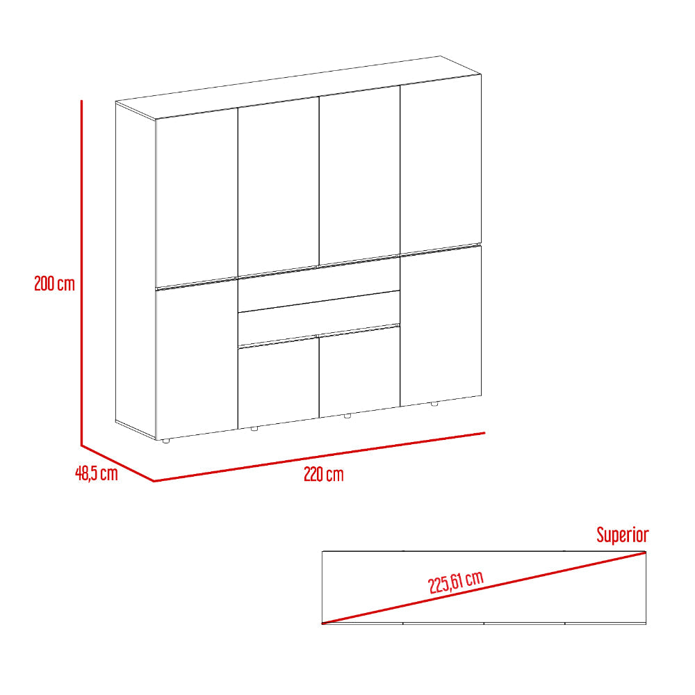 Closet Siruela, Café Claro y Blanco, con Cuatro Cajones, Ocho Puertas y Gran Capacidad de Almacenamiento