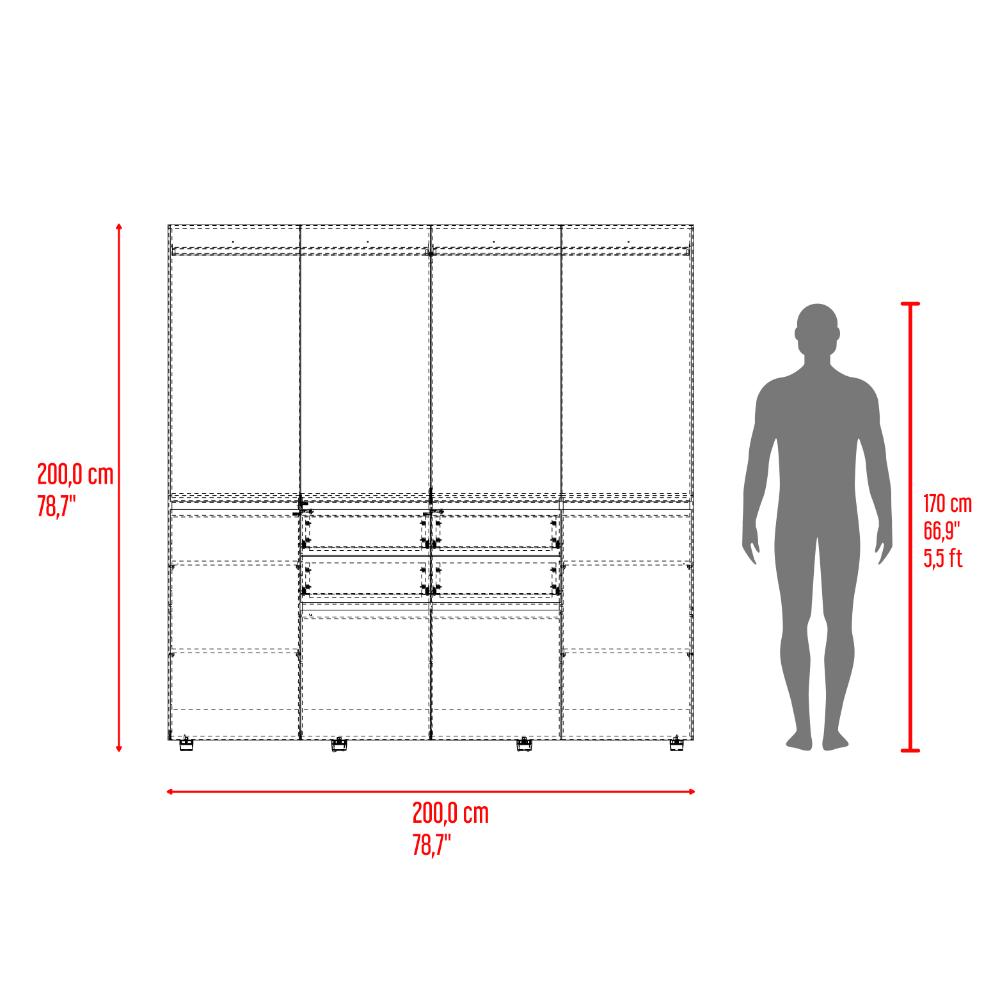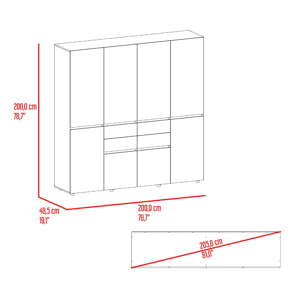 Closet Siruela 200, Fresno Europeo y Blanco, con Cuatro Cajones, Ocho Puertas y Gran Capacidad de Almacenamiento