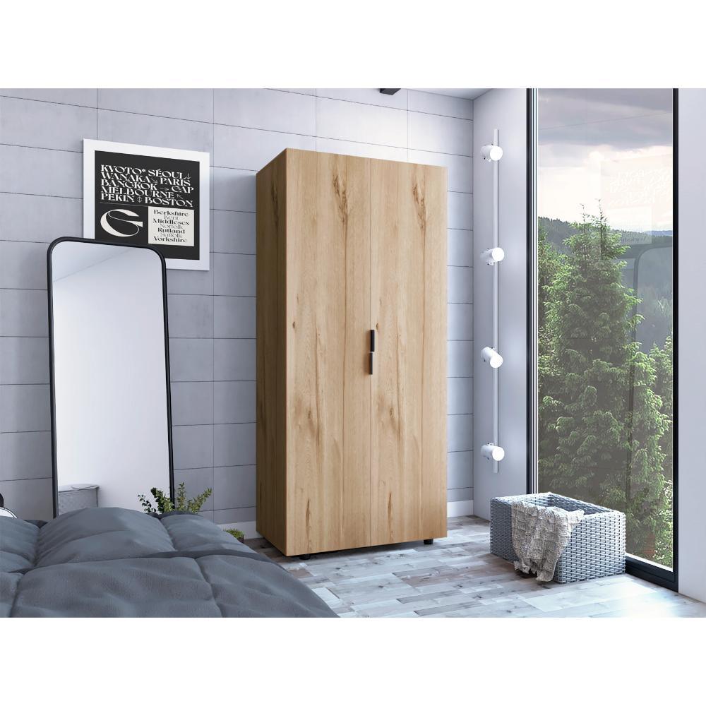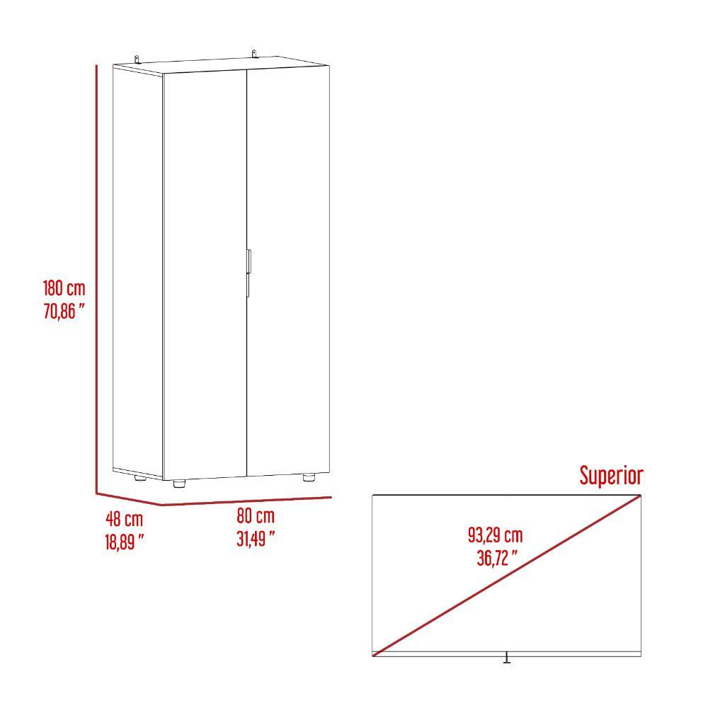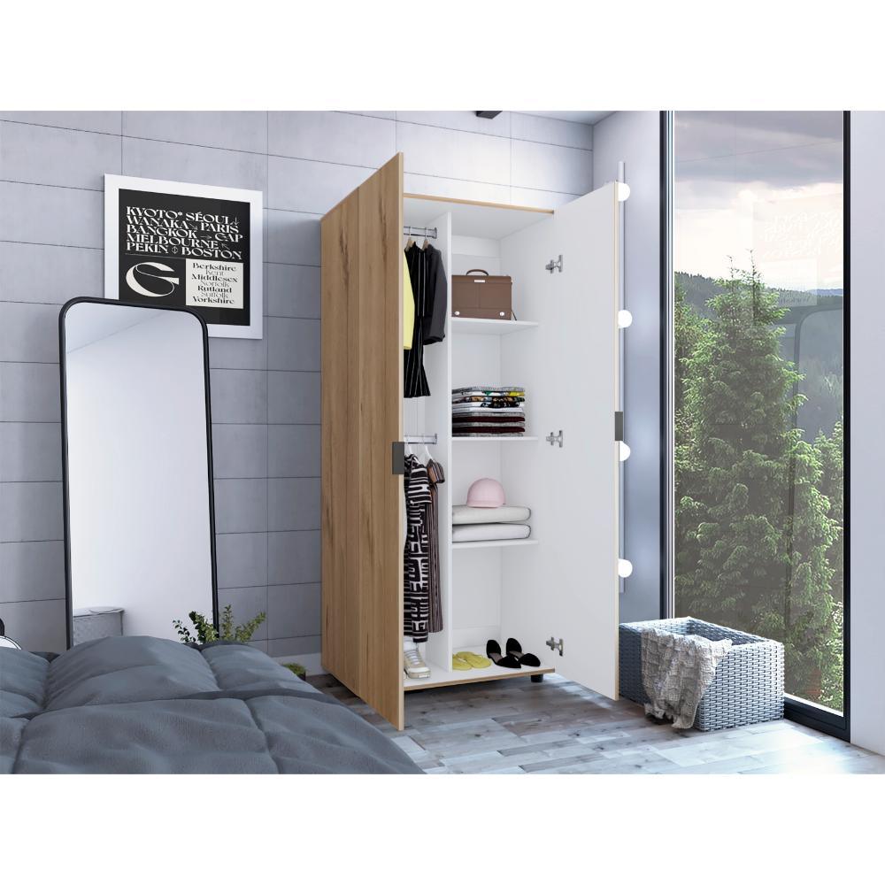 Closet Tera, Café Claro y Blanco, Dos Puertas Abatibles y Dos Tubos Cromados