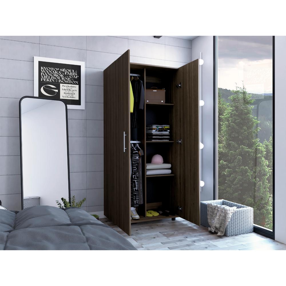 Closet Tera, Milan y Wengue, Dos Puertas Abatibles y Dos Tubos Cromados