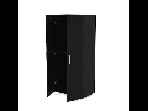 Closet, con 2 puertas abatibles, 2 tubos para colgar prendas, y 3 entrepaños para organizar.