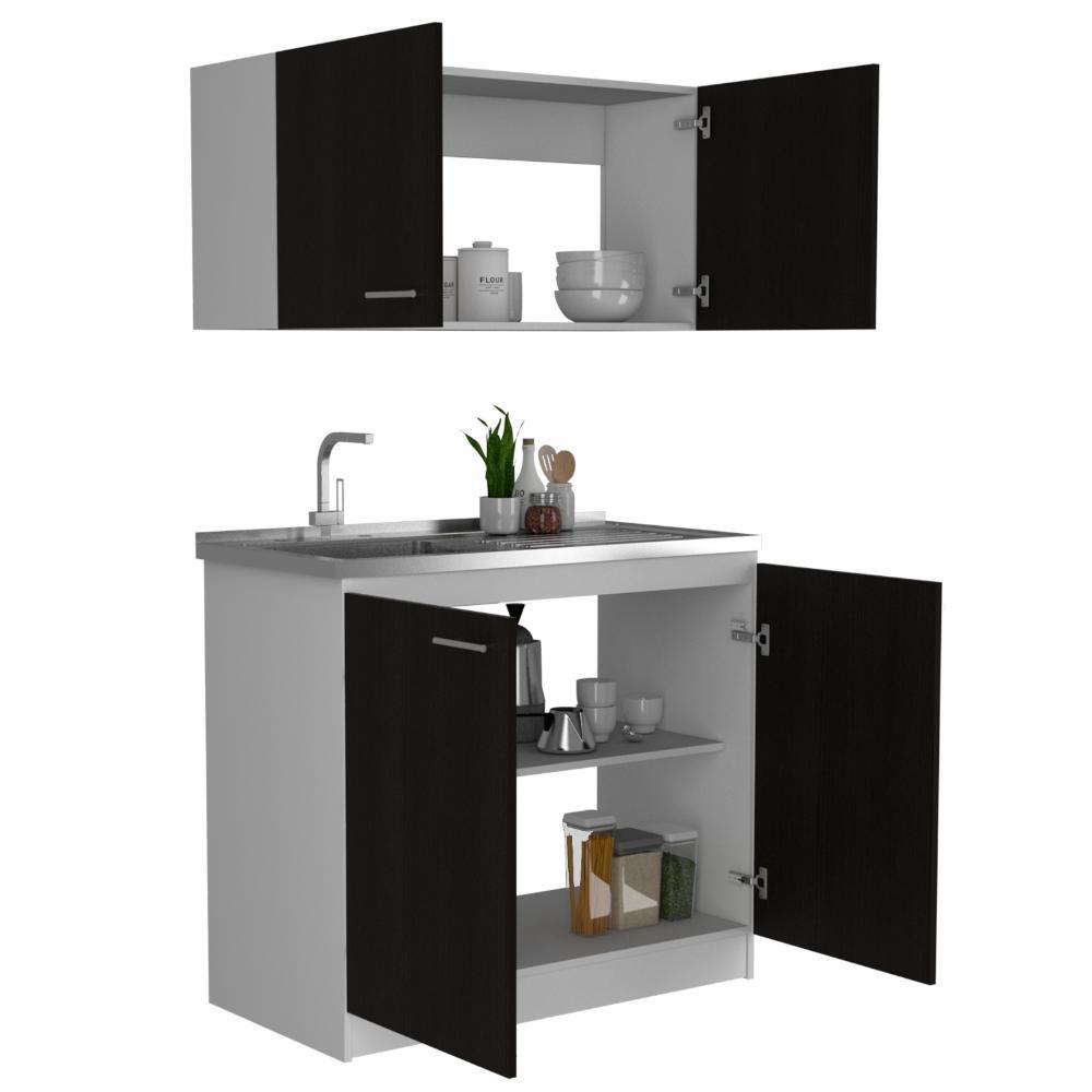 Elaborado en Madera aglomerada MDP, recubierta con láminas melamínicas de excelente calidad, en color Blanco y Wengue