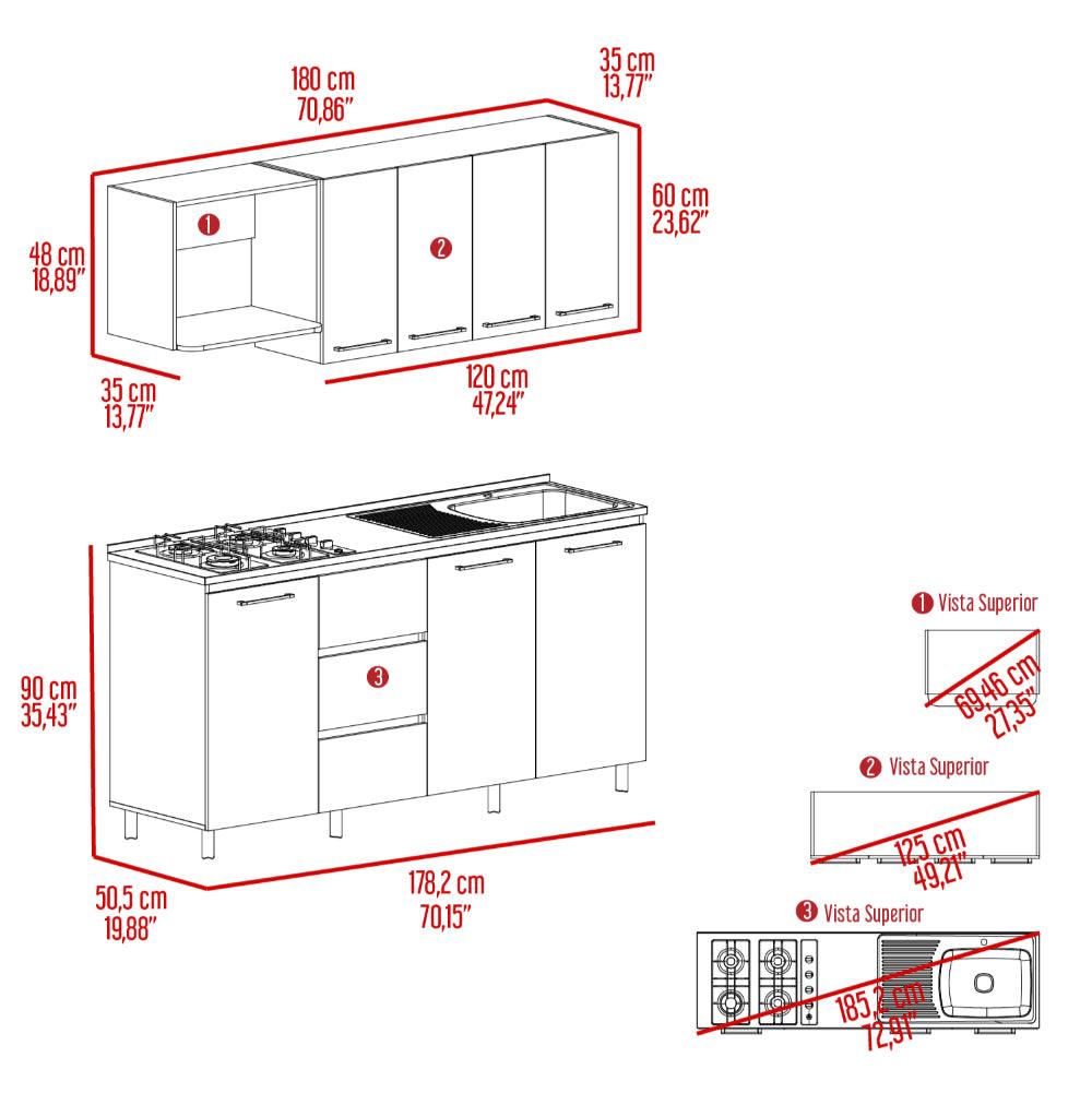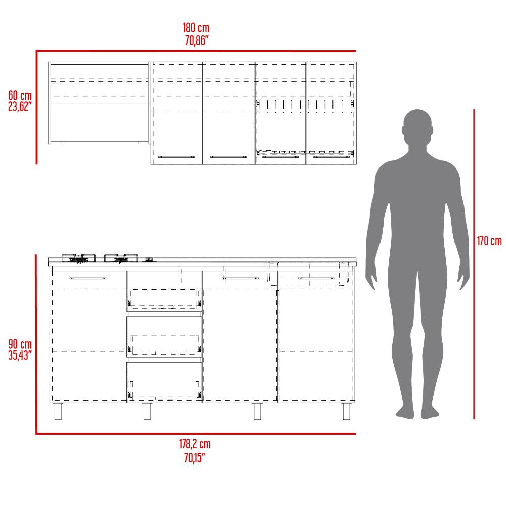 Cocina Integral, Con patas del mismo color de las manijas, Riel sencillo, incluye , locero, portavasos y MESON 1,80 ECONOMICO NORTH Y QUEMADORES
