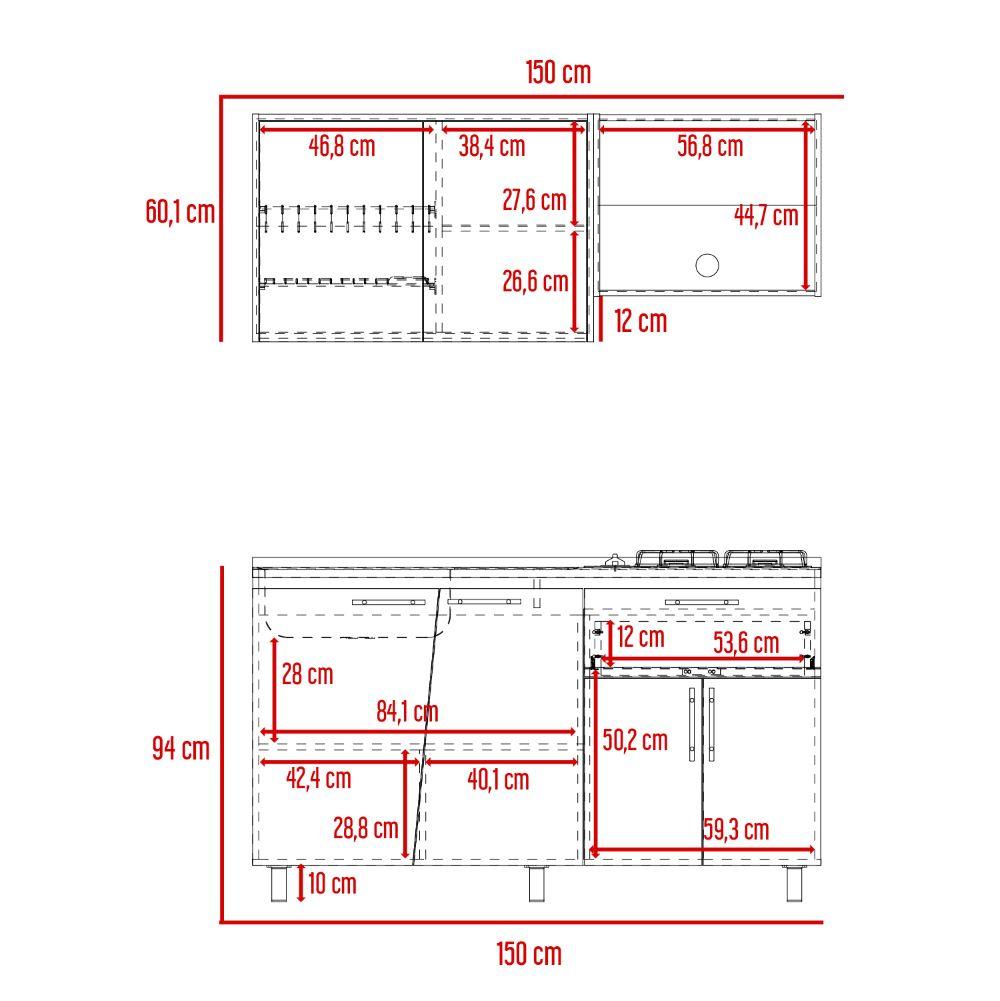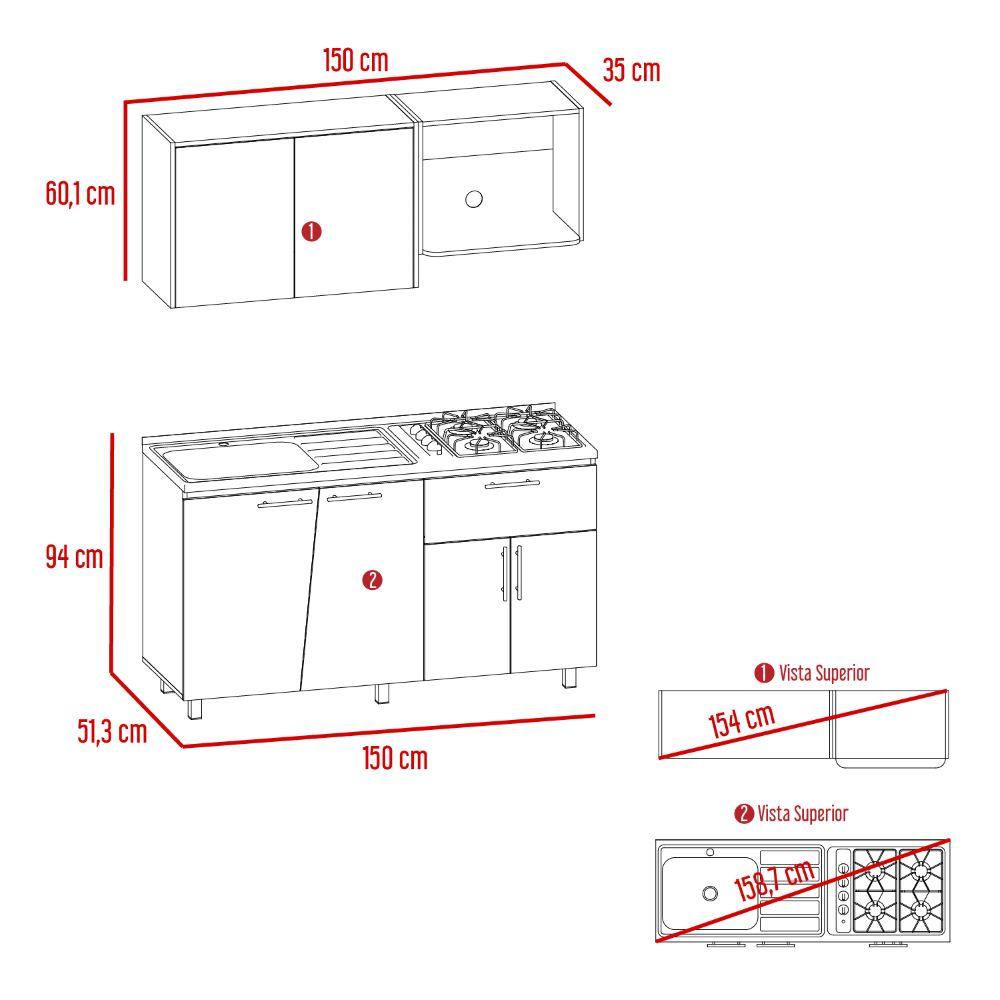 Cocina Integral, con 6 puertas abatibles, 4 entre paños, 2 cajones y pozuelo a la derecha *INCLUYE MESÓN*