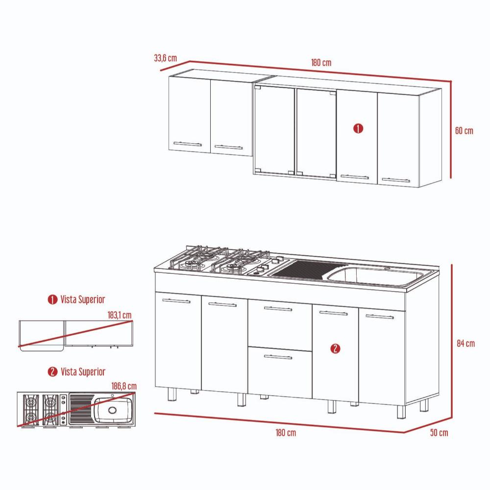Cocina Integral 1,80, incluye mesón derecho north monocontrol 180x50cm