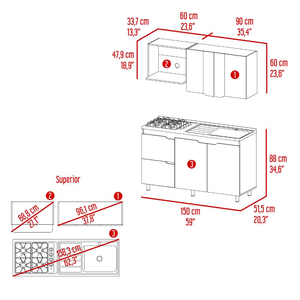 Cocina Integral Mound, Café Claro y Wengue, Incluye Mesón Derecho en Acero ZF