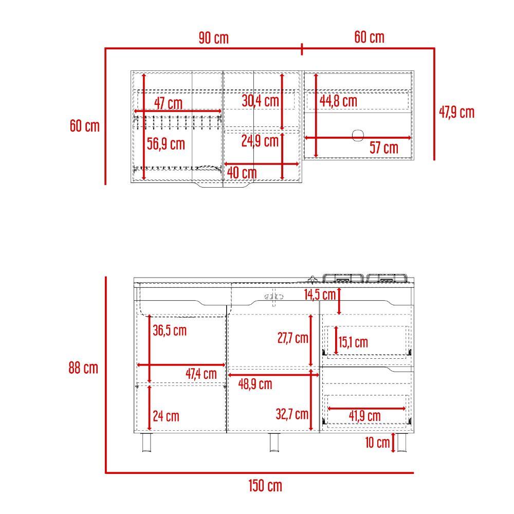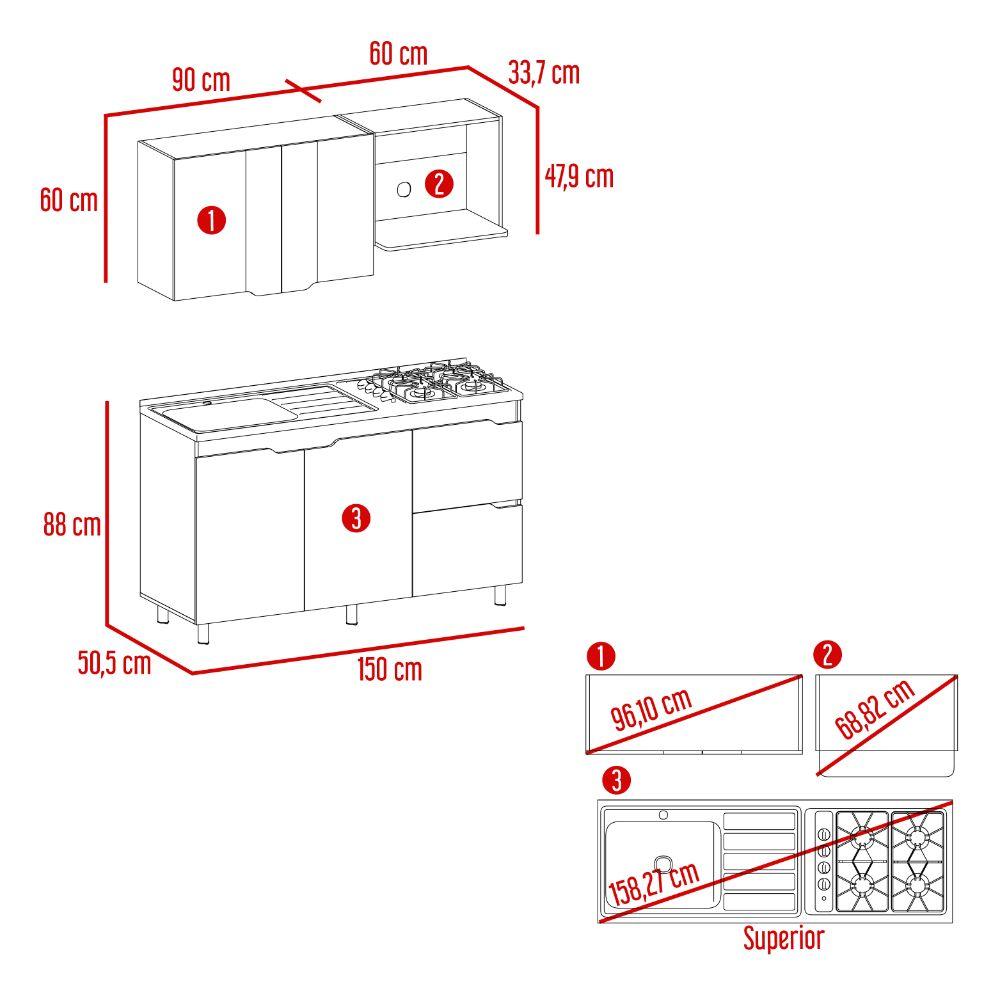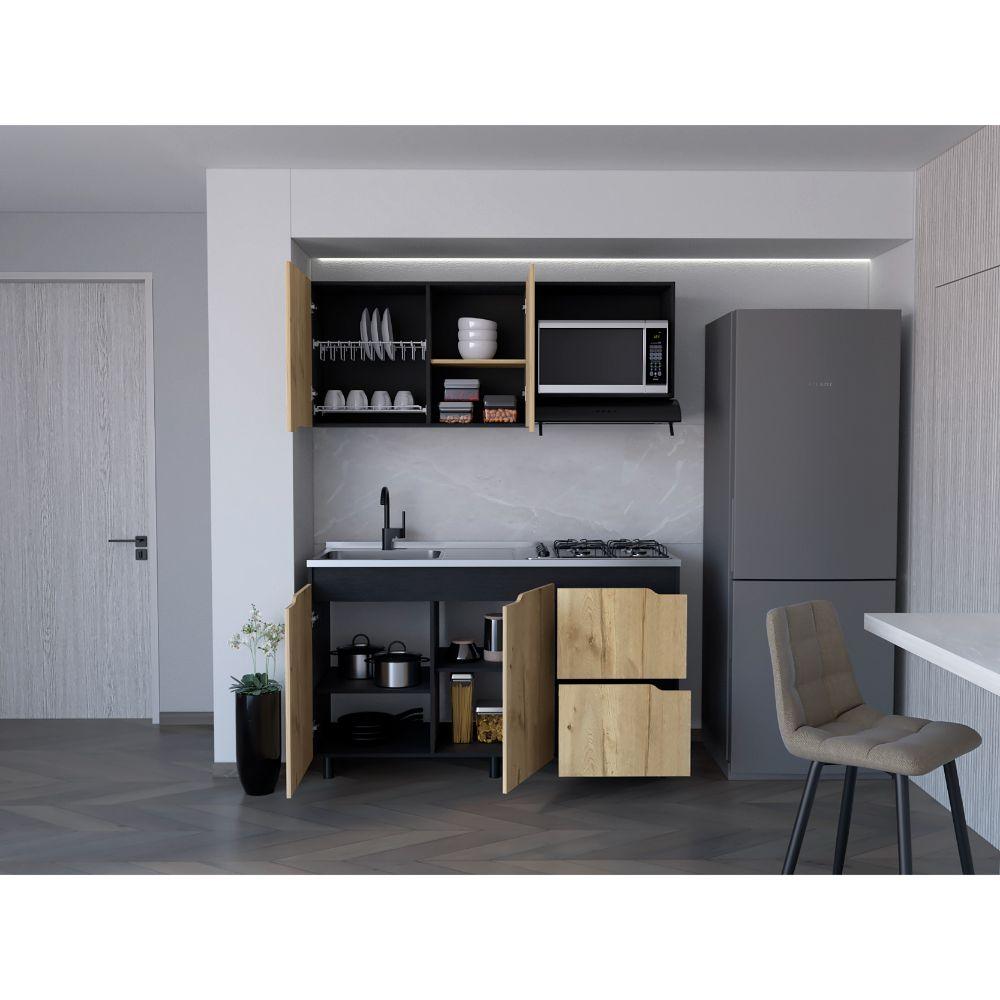 Cocina Integral Mound, Café Claro y Wengue, Incluye Mesón Izquierdo en Acero CF