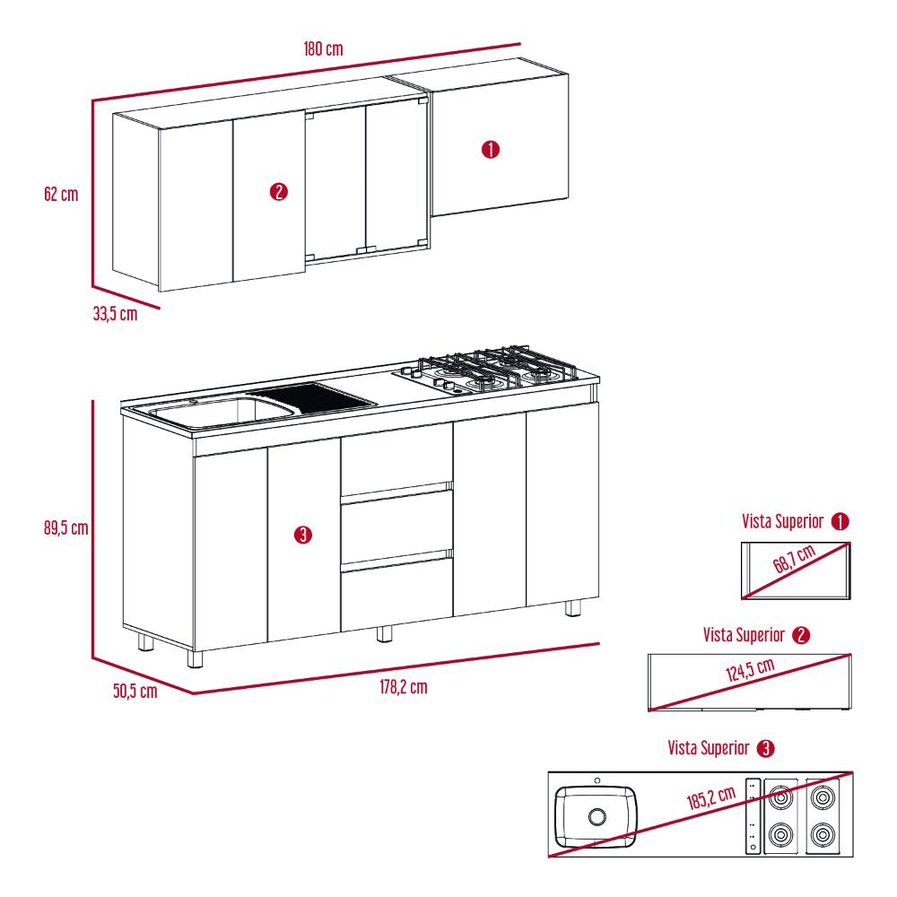Cocina Integral Polux, Gris y Blanco, Incluye Mesón Izquierdo Hc