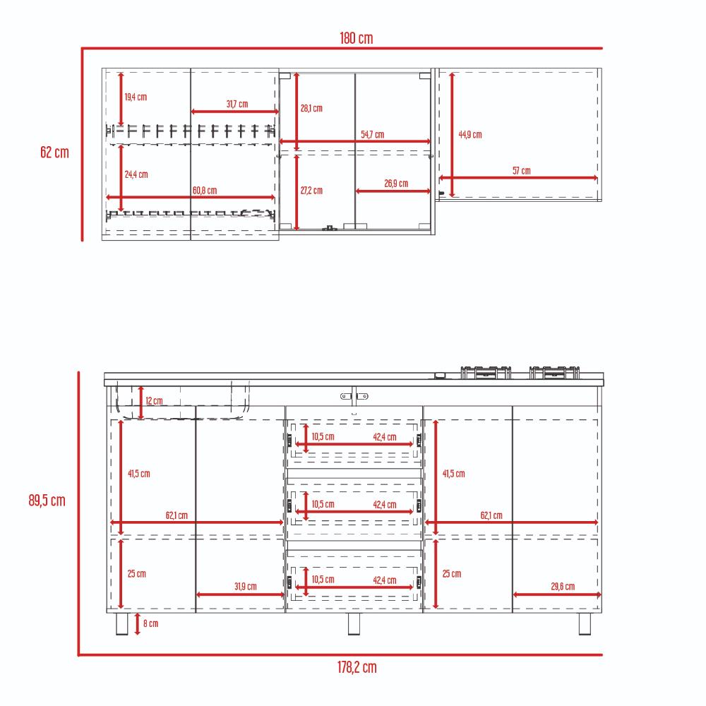 Elaborado en Madera aglomerada MDP, recubierta con láminas melamínicas de excelente calidad, en color Gris y Blanco.