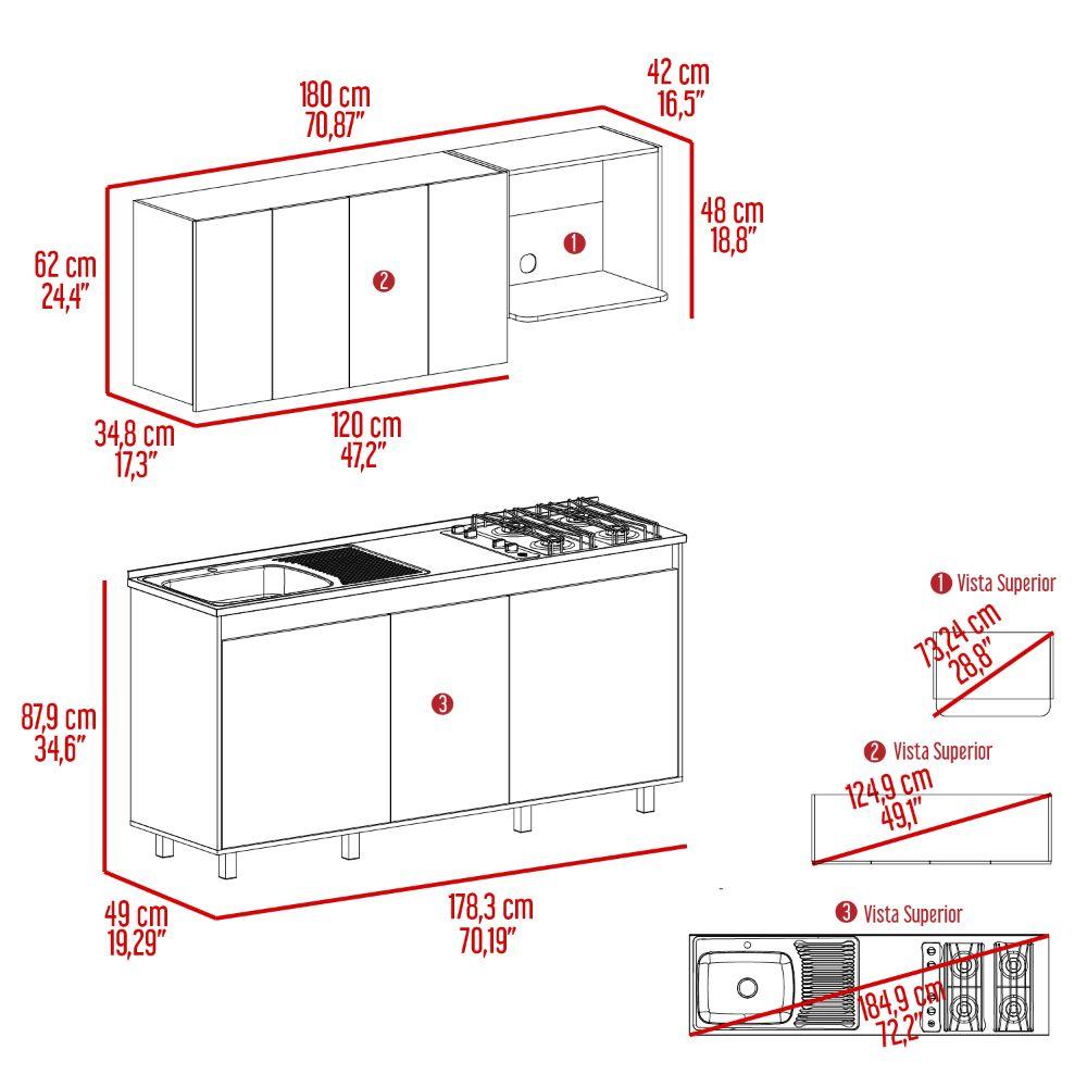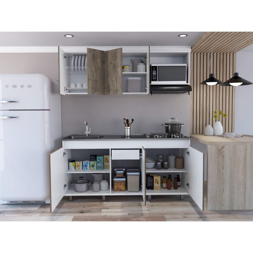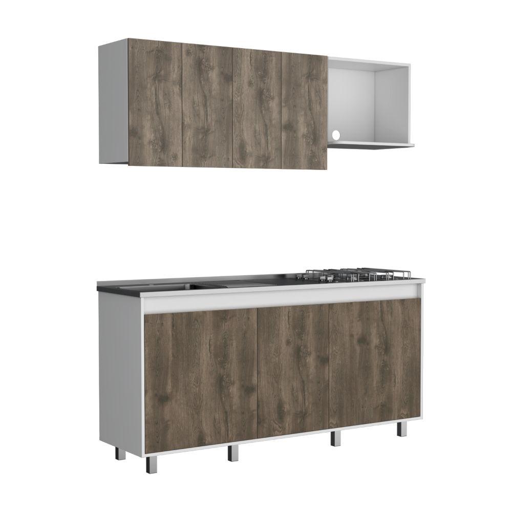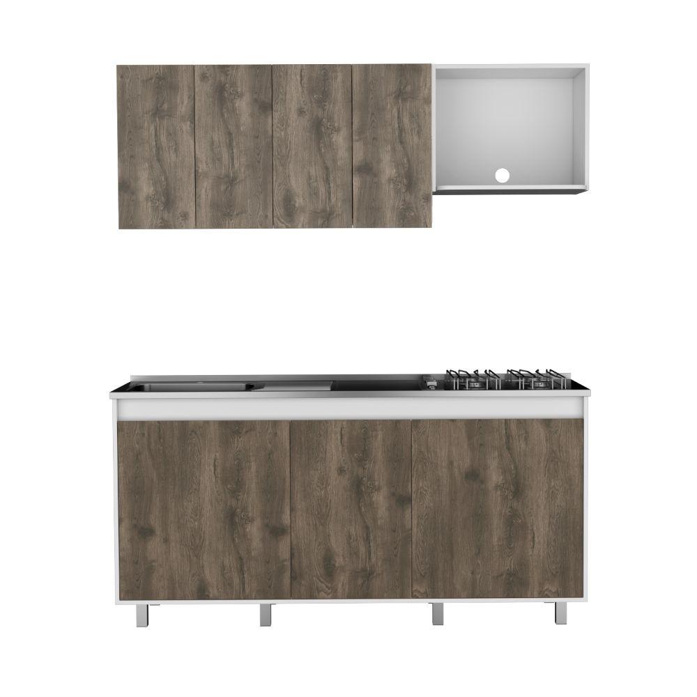 Cocina Integral Zurelly, Nogal y Blanco, Incluye Mesón Izquierdo en Acero