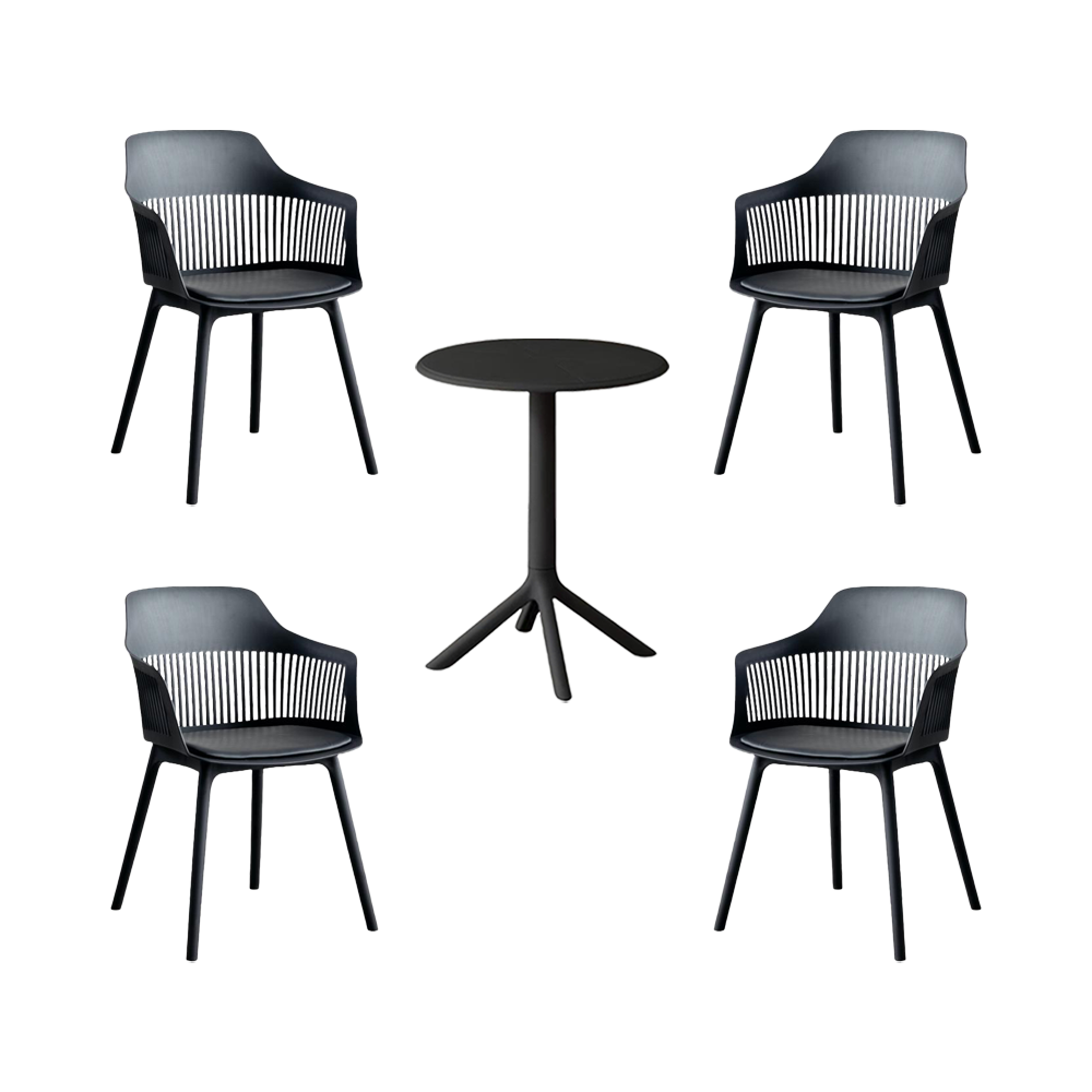Combo Atlas, Incluye Mesa Redonda y 4 Sillas en Color Negro