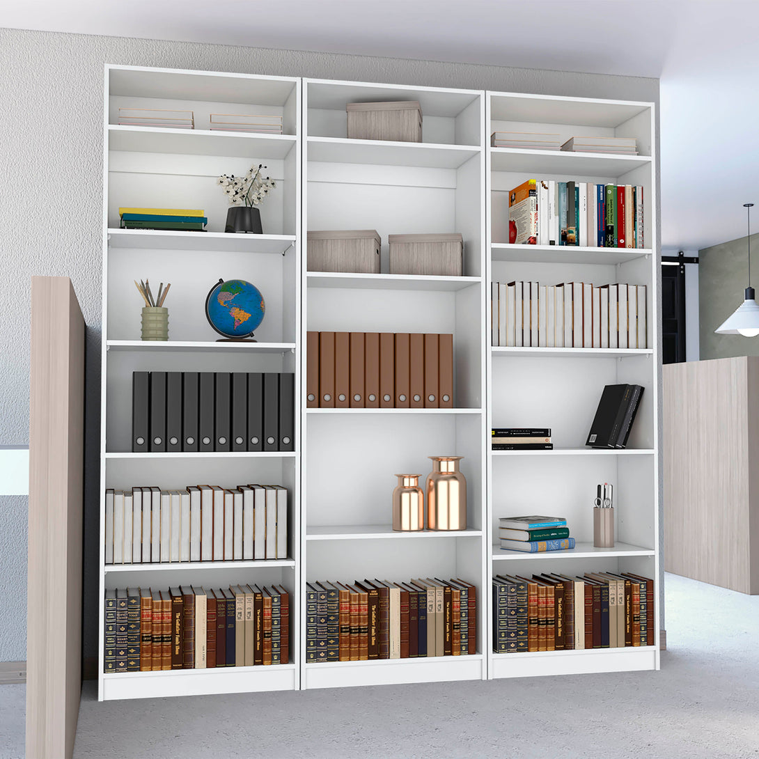 Combo de Bibliotecas Home, Blanco Incluye Tres Bibliotecas sin puertas y Tres Complementos