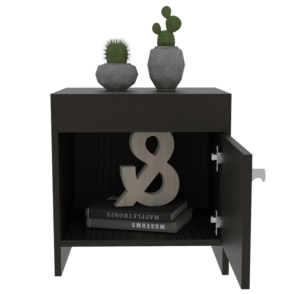 Mesa de Noche, con 1 puerta batiente con amplio espacio para almacenar objetos. Color Wengue