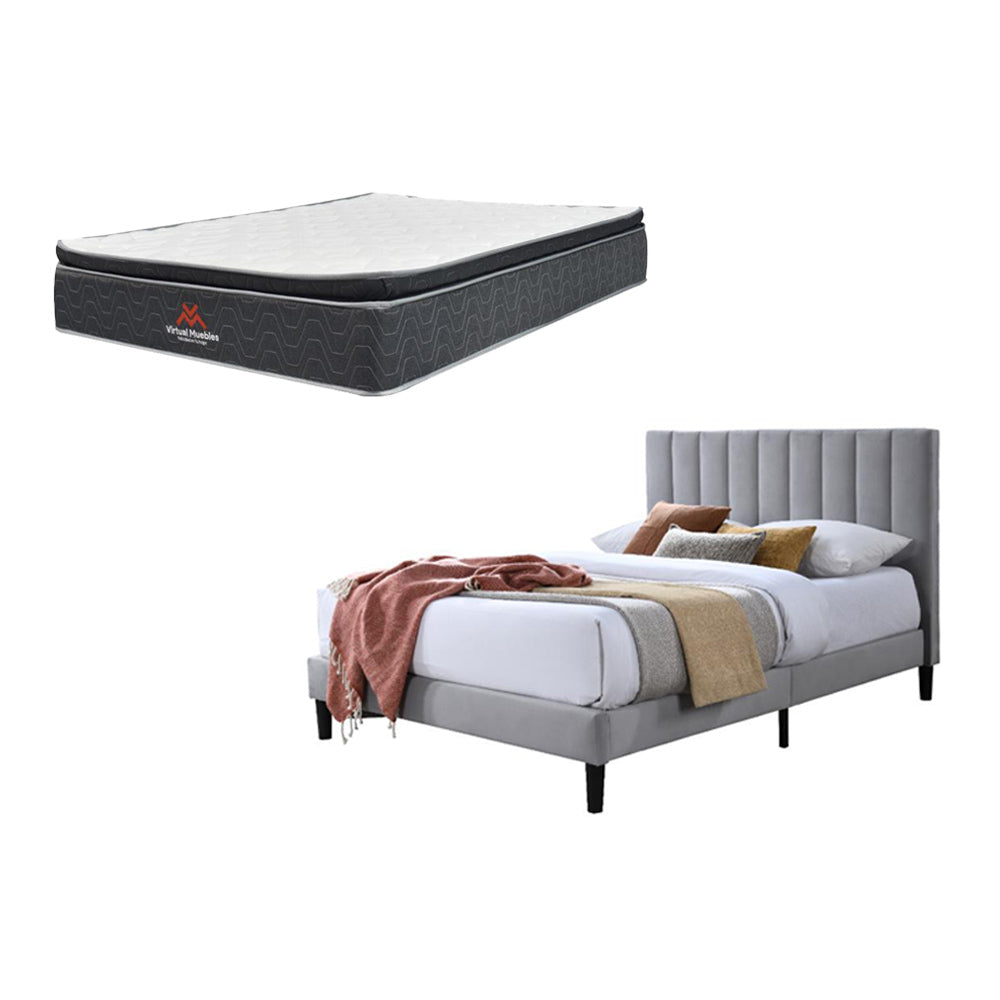 Cama Doble, con diseño moderno y espaldar alto. Elaborado en Madera Contrachapada y Respaldo Tapizado de excelente calidad, en color Gris Claro