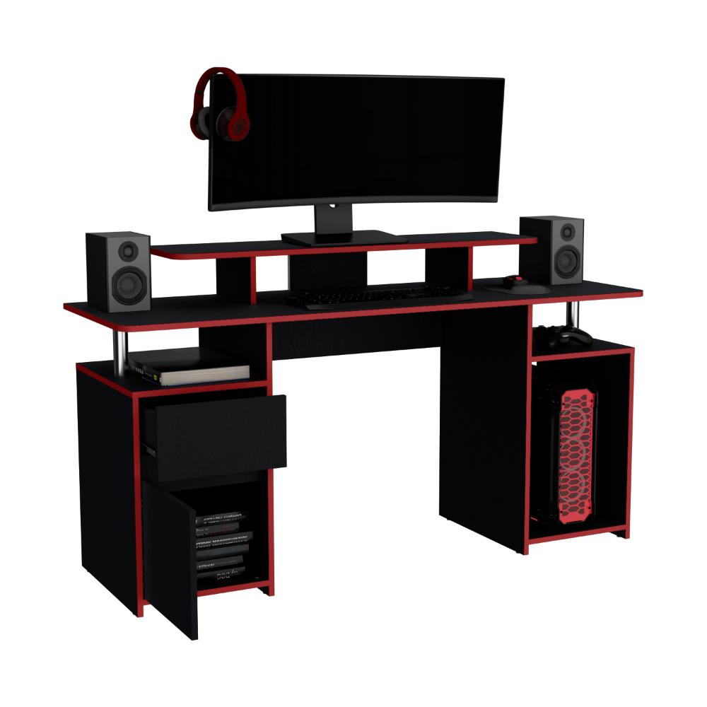 Escritorio Gamer con espacio para diferentes equipos, con borde rojo.
