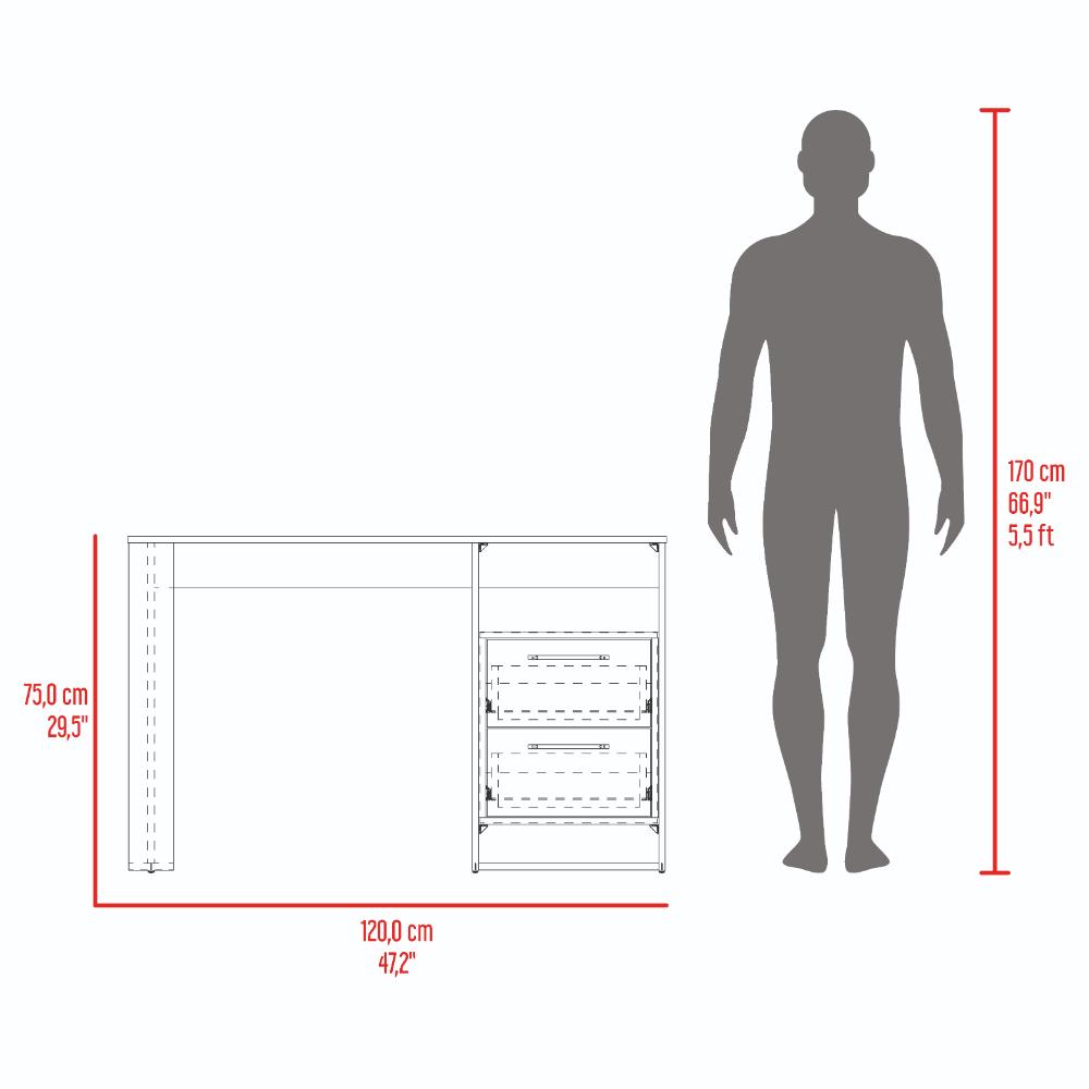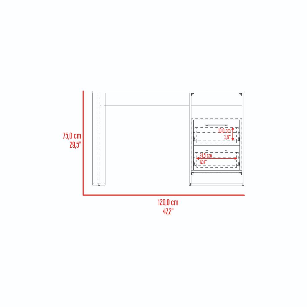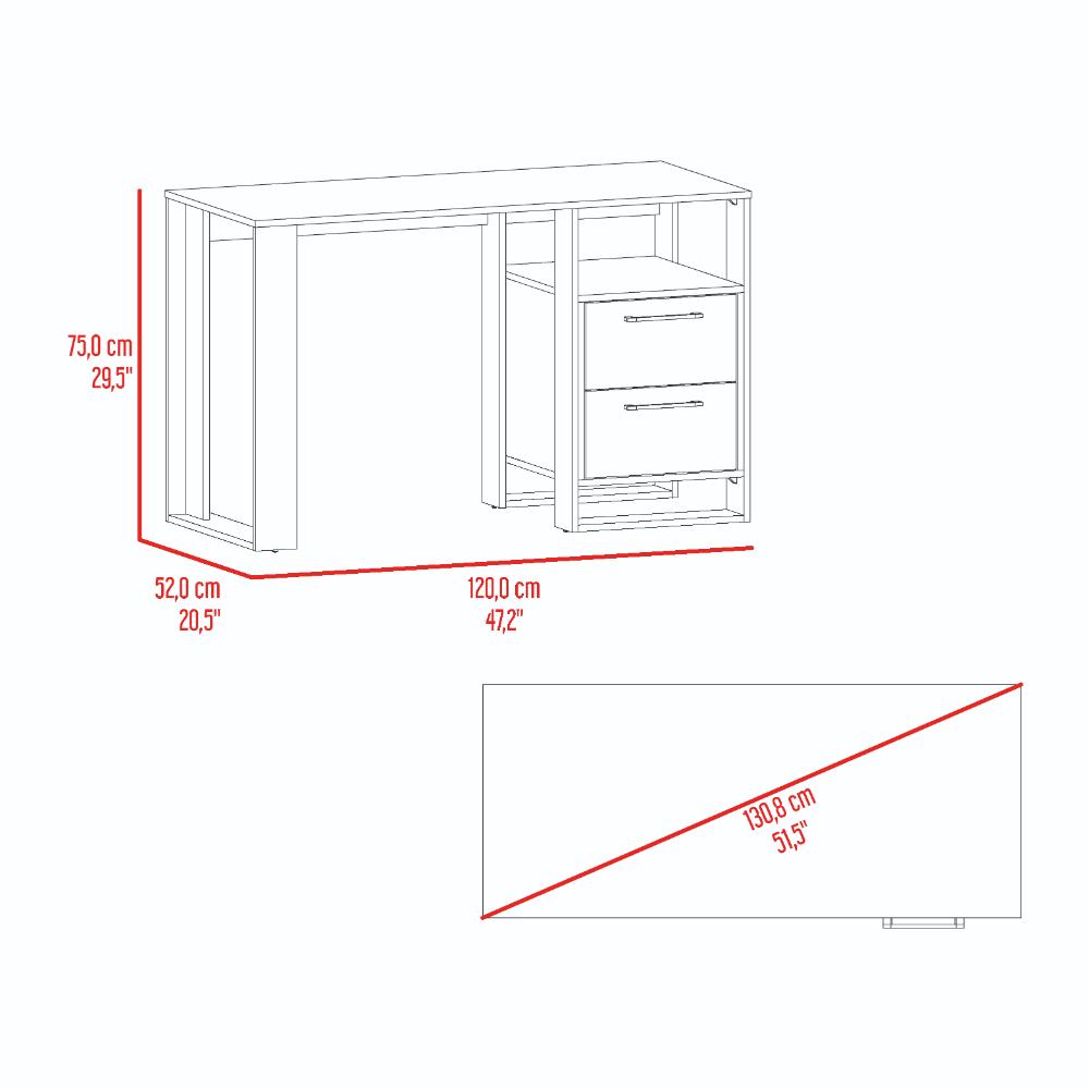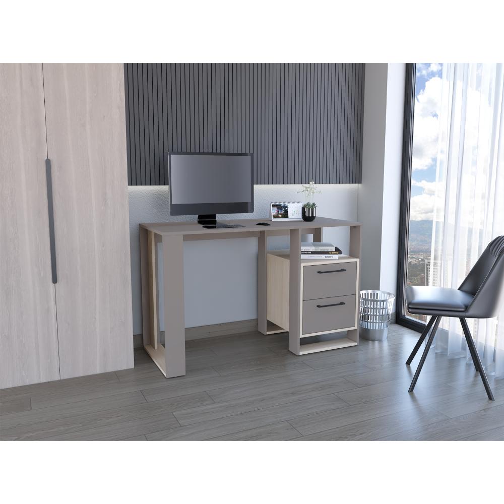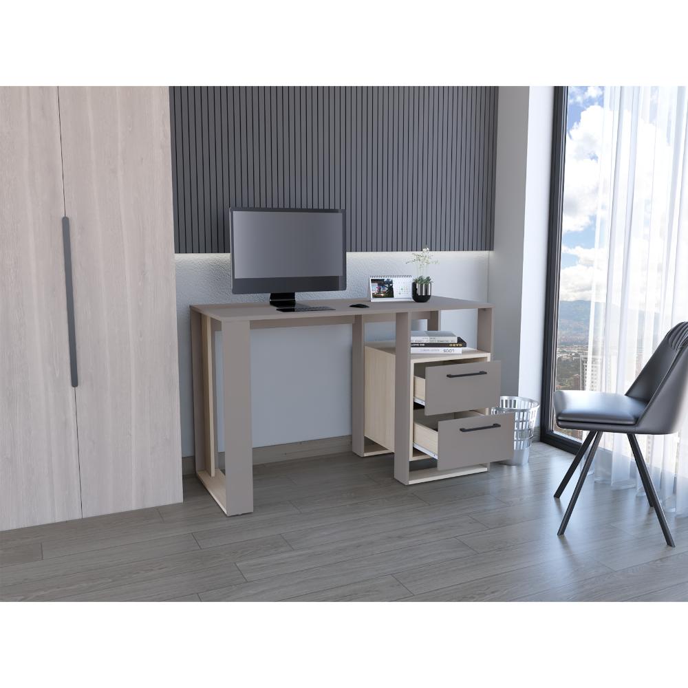 Escritorio, con amplia superficie de trabajo, dos cajones para ubicar objetos, diseño moderno.