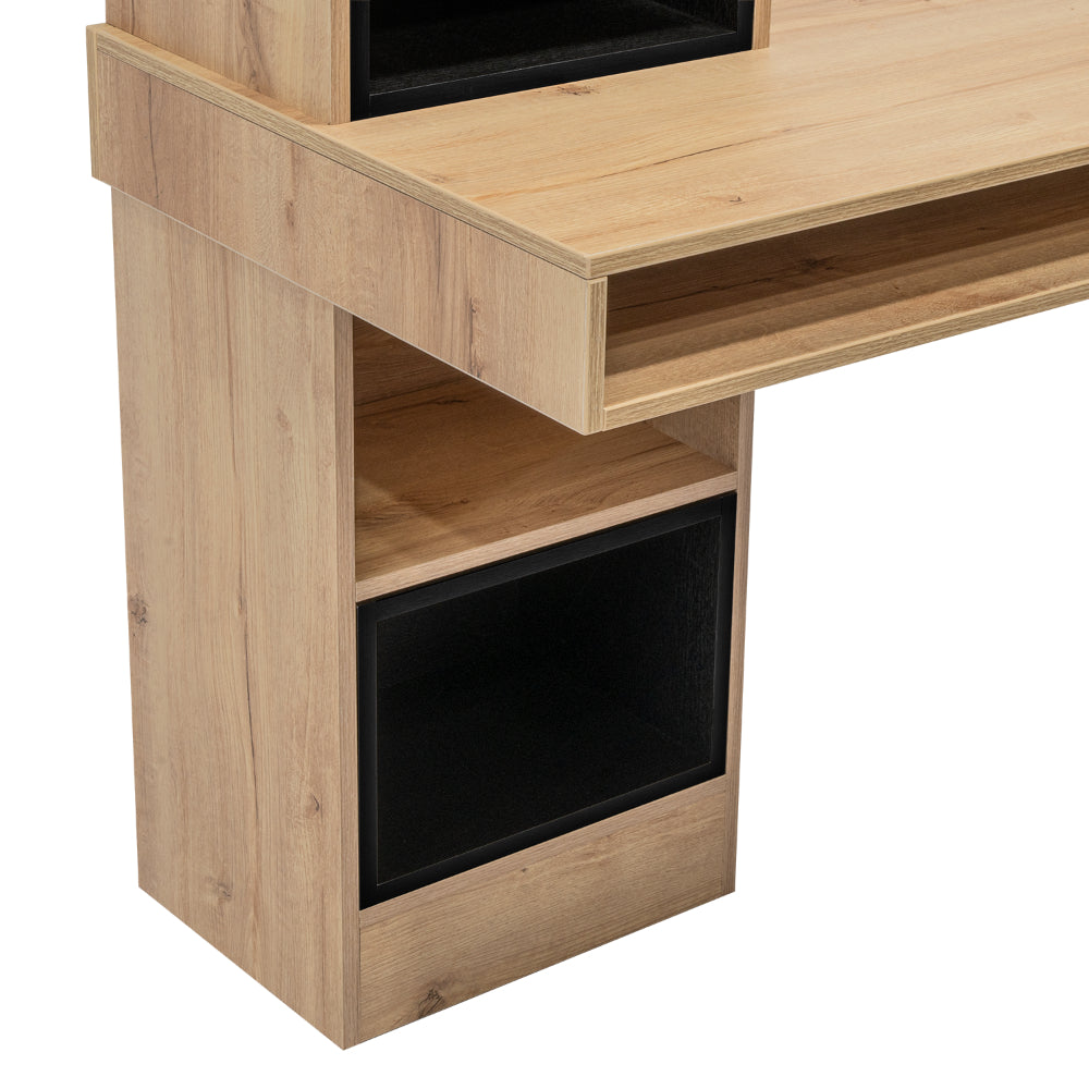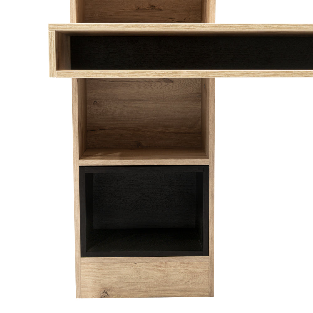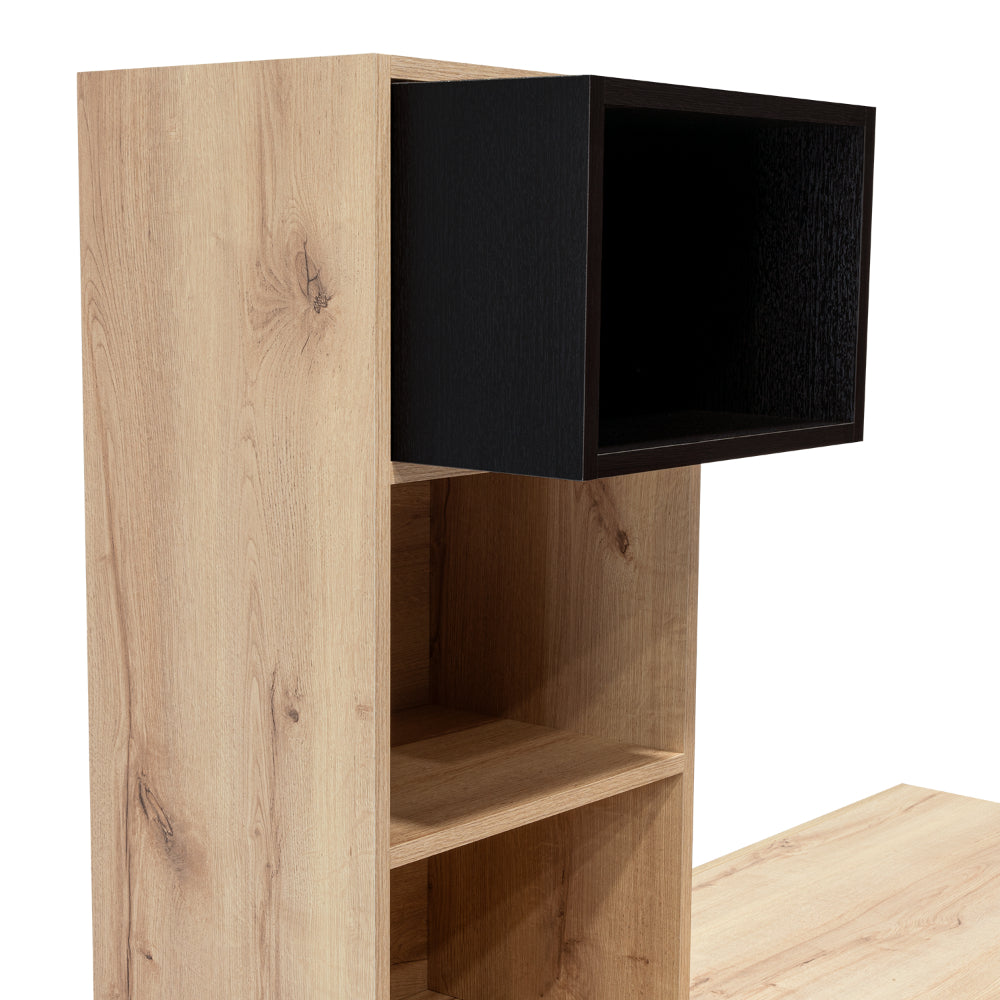 Escritorio Bonaire, Café Claro y Wengue, con Cuatro Entrepaños y Dos Módulos de Pared