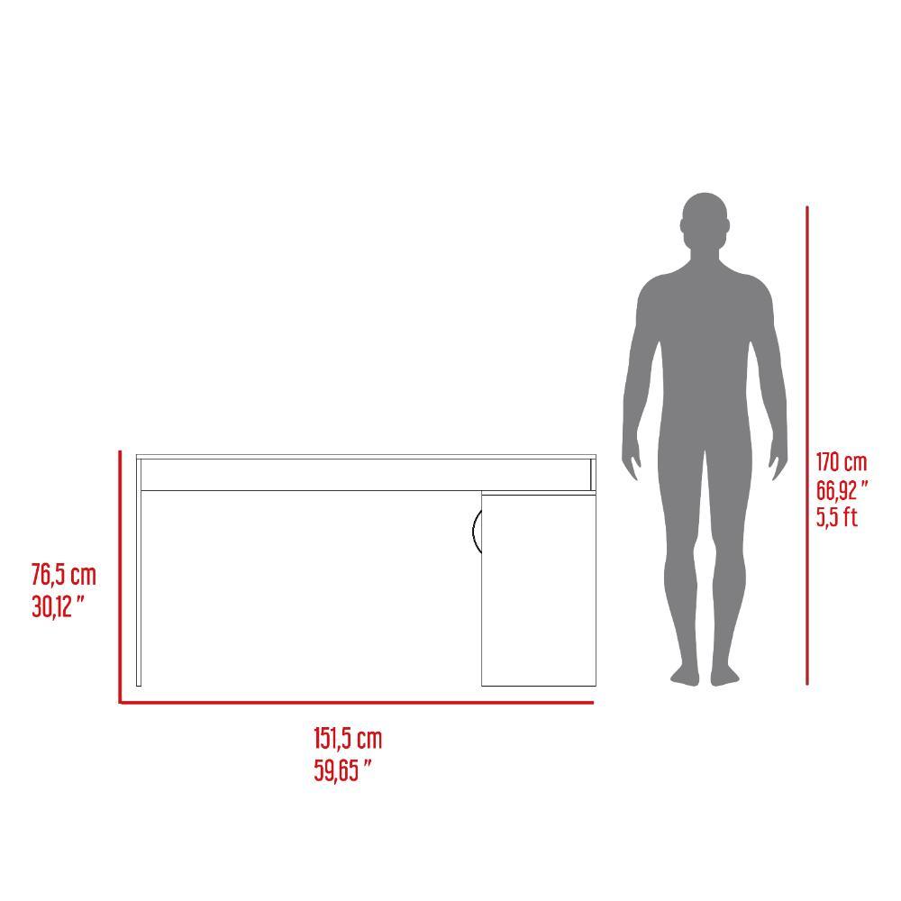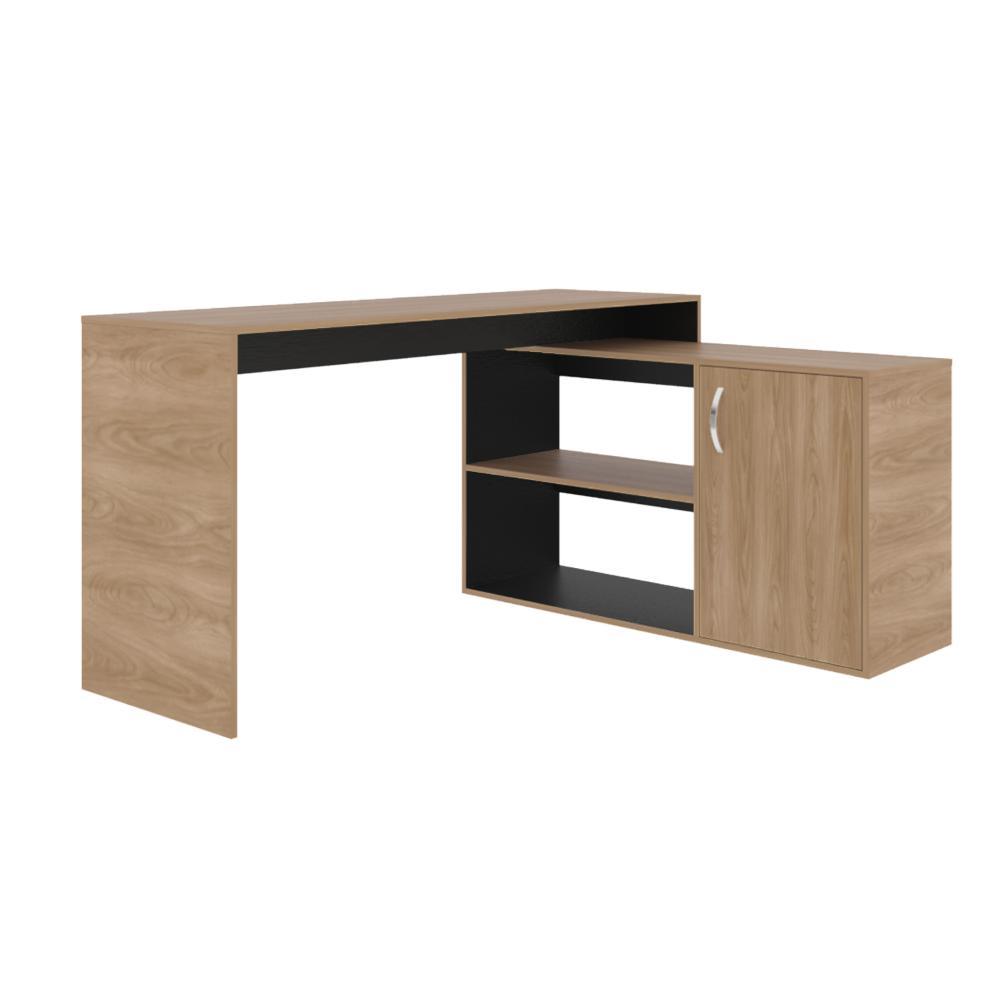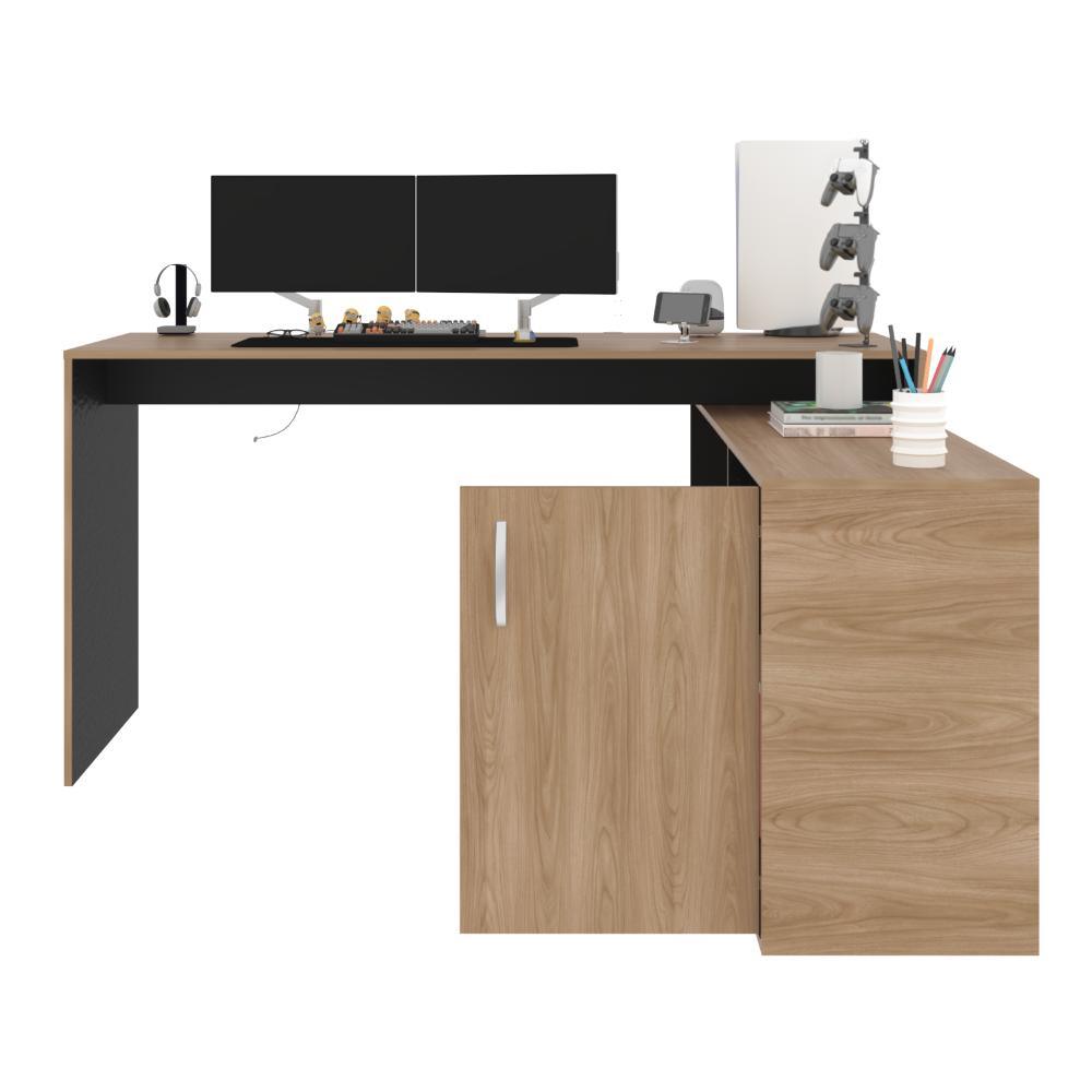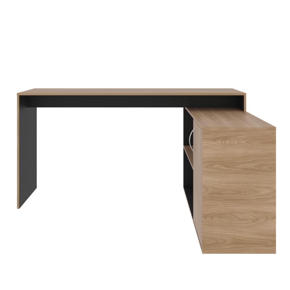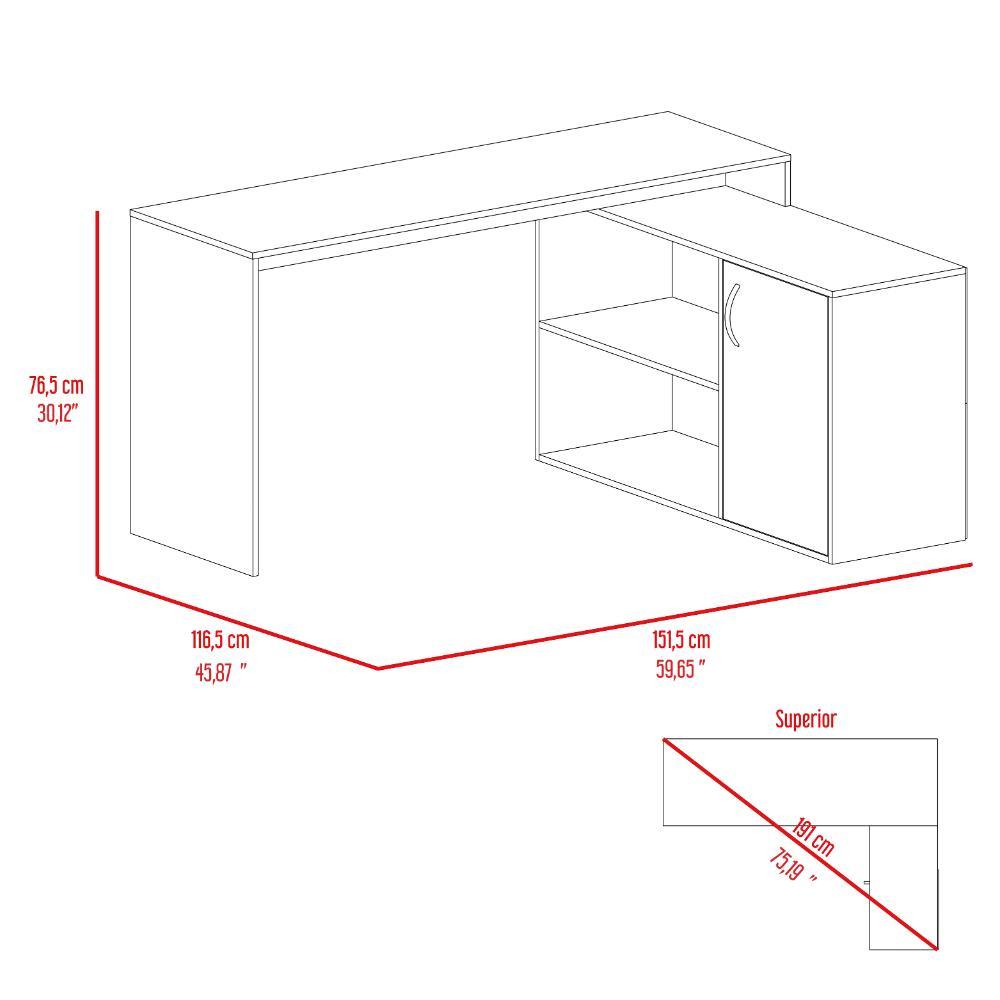 Escritorio en L, con espacio con puerta batiente para almacenar libro u otro, y